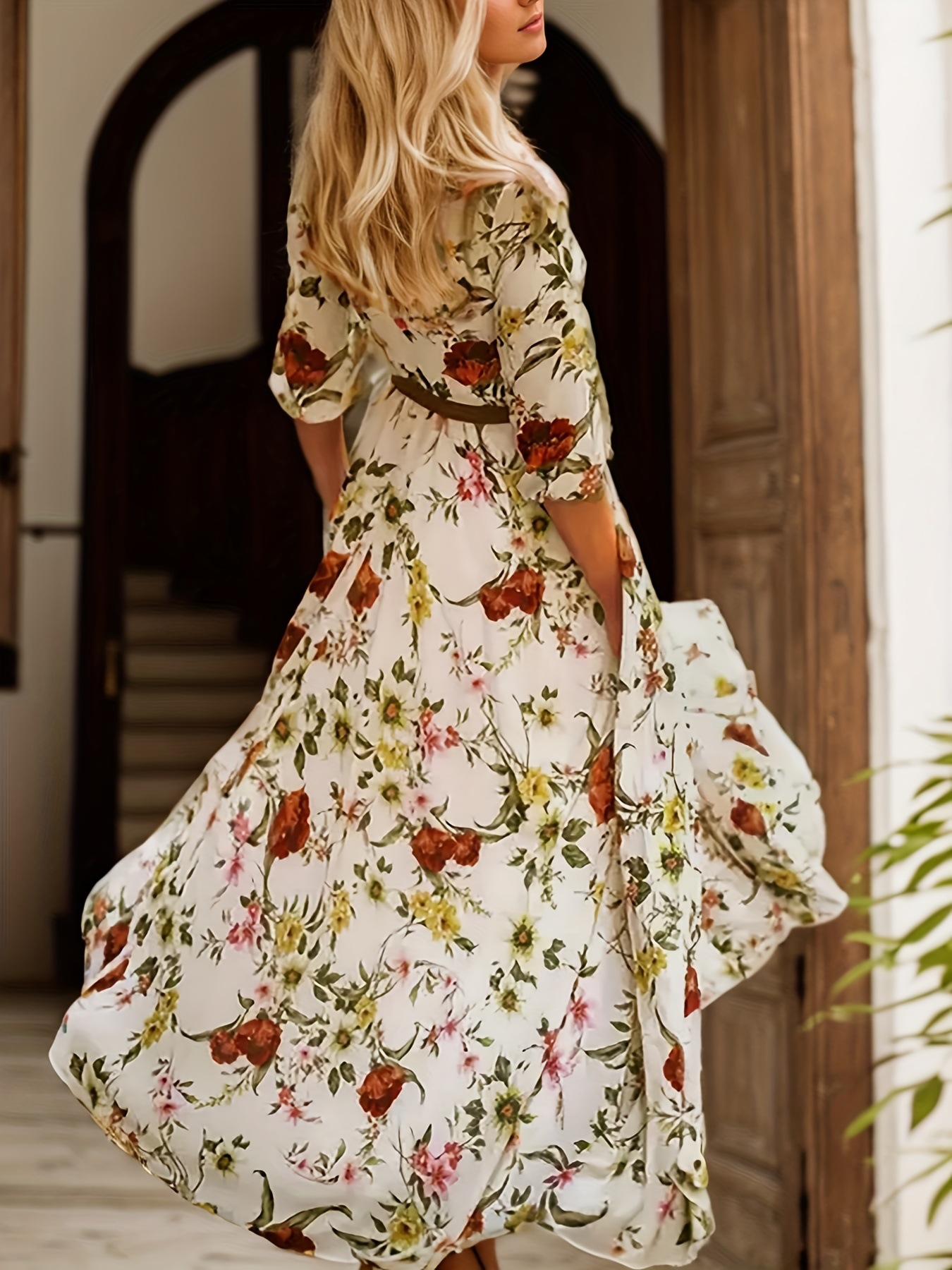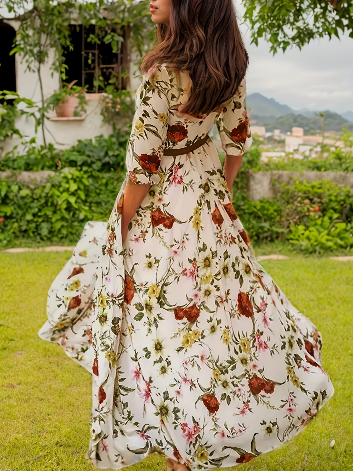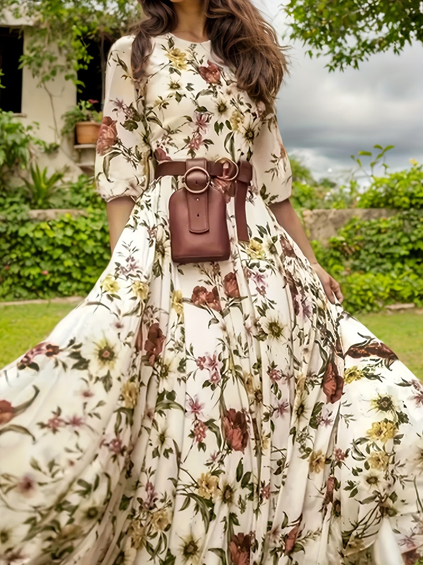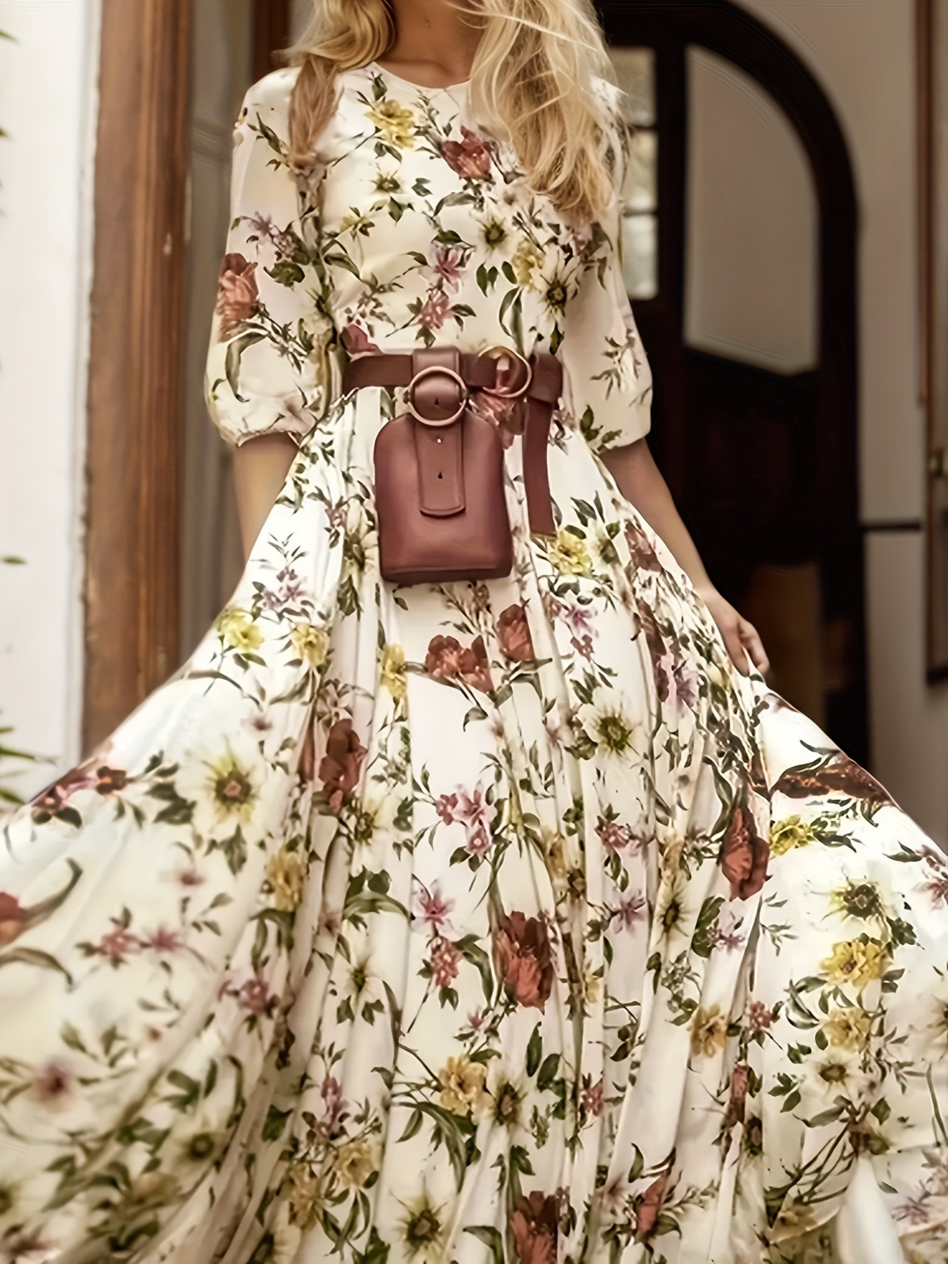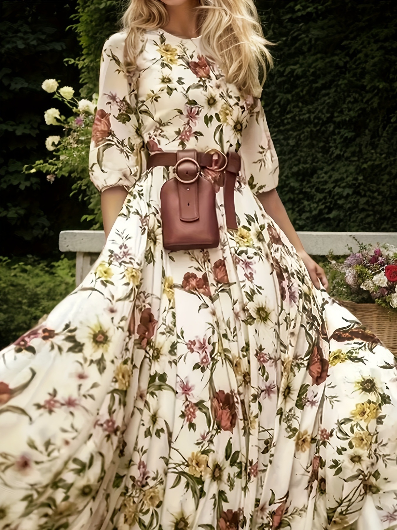 女性のためのエレガントなプリンセスドレス花柄長袖
