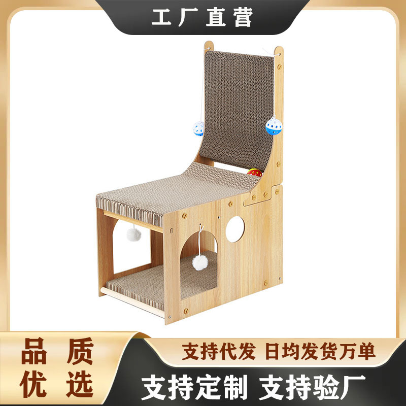 创意L形椅子造型猫抓板自带铃铛毛绒逗猫可拆卸猫咪磨爪跨境专供