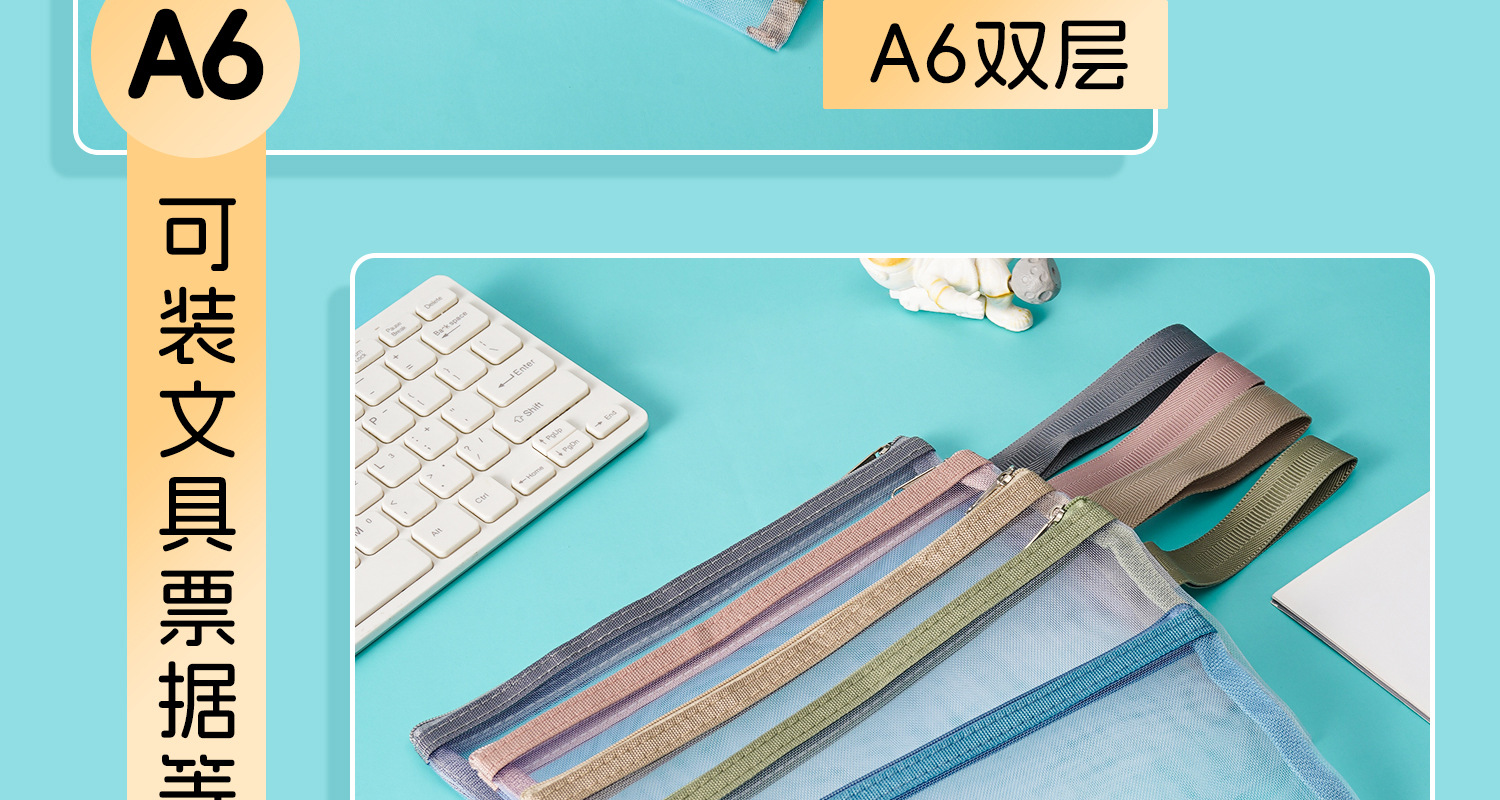 新款莫兰迪网纱文件袋便携旅行洗漱包儿童拼图玩具收纳袋可印LOGO