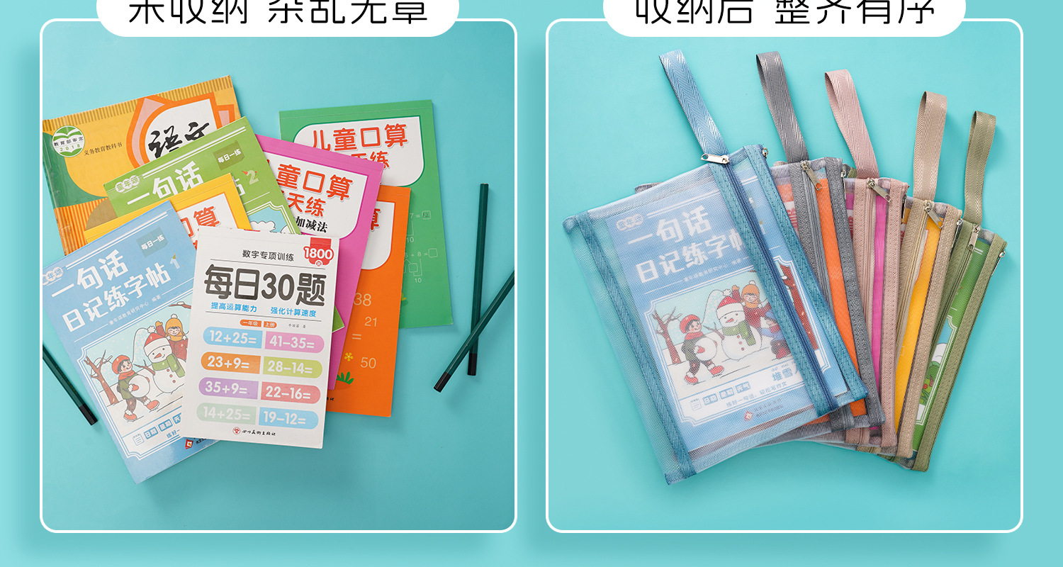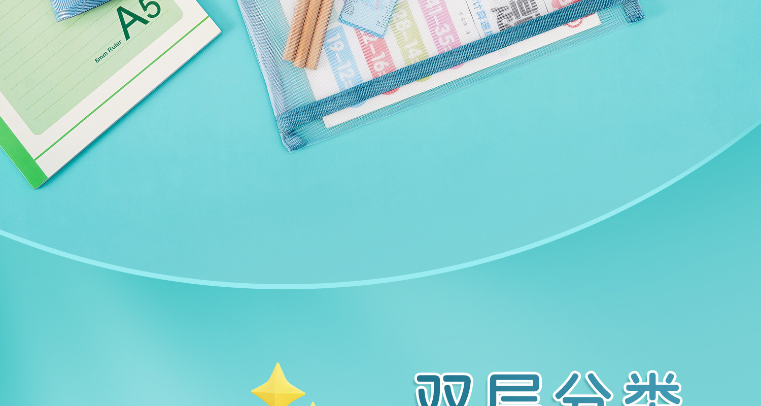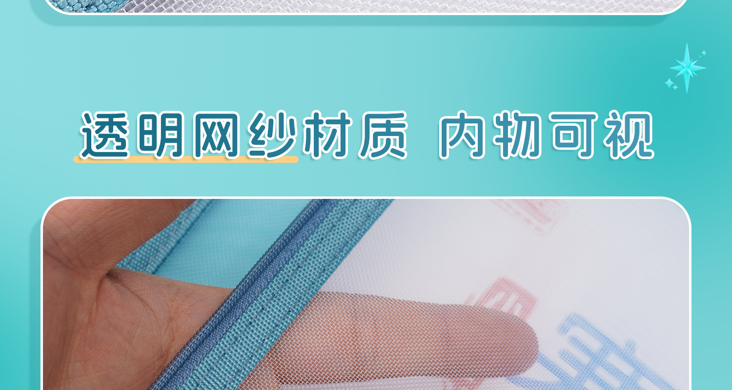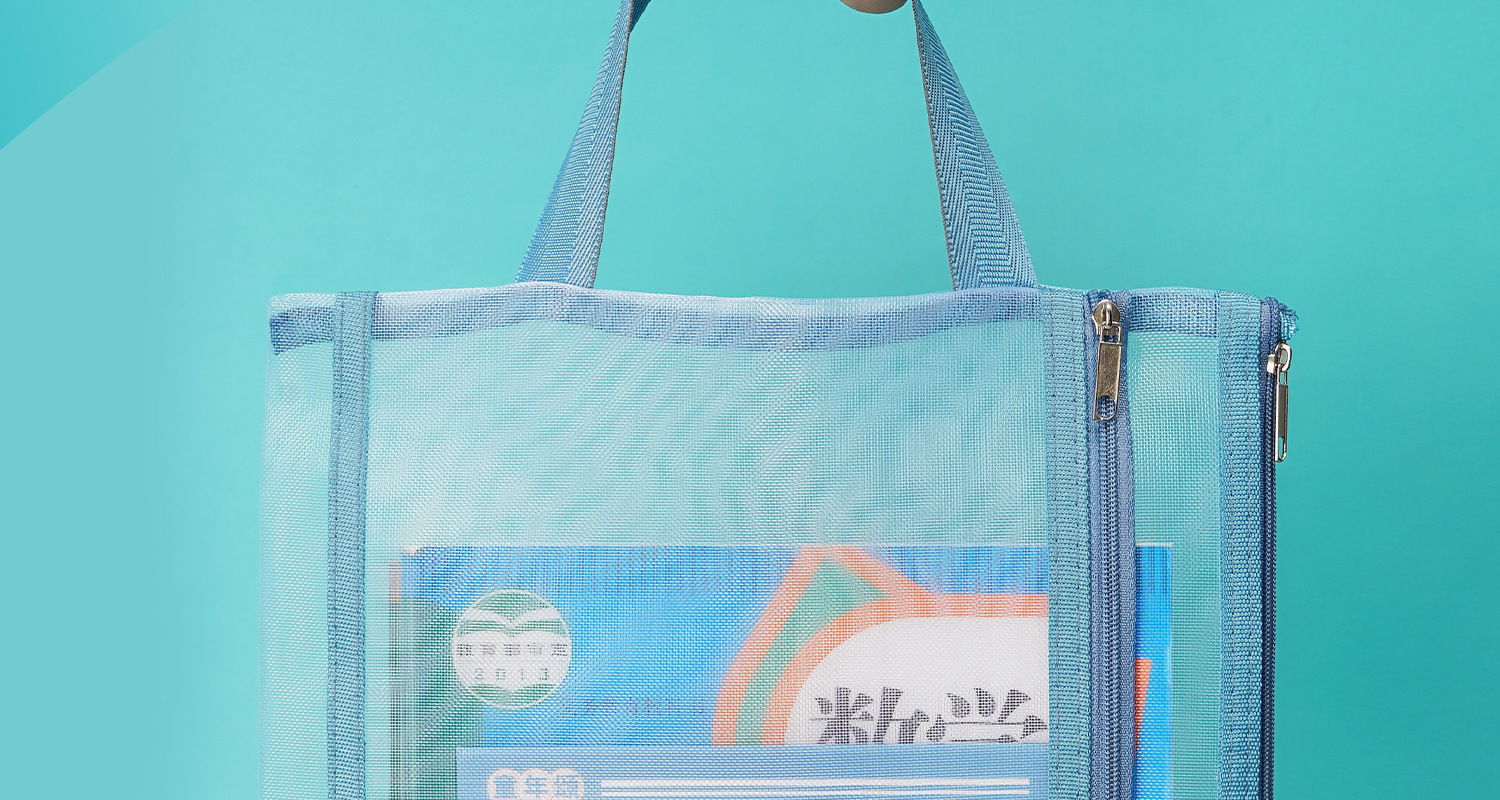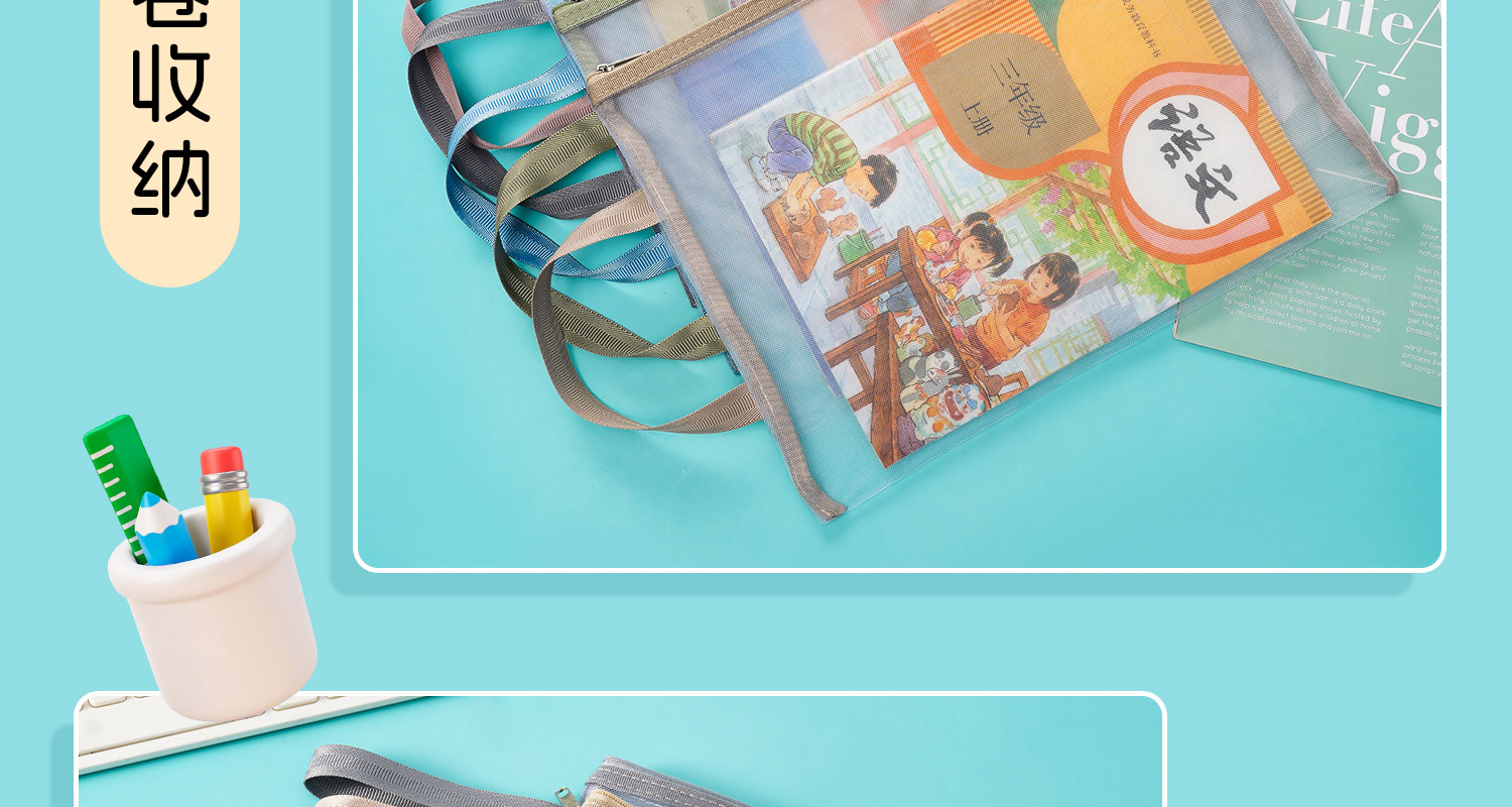 大容量纱网袋透明双层手提学生作业资料试卷文件分类收纳拉链袋
