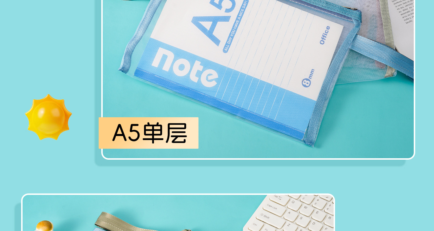 透明網紗収納袋A4二重手提げ学生試巻分類資料袋大容量書類袋チャック袋