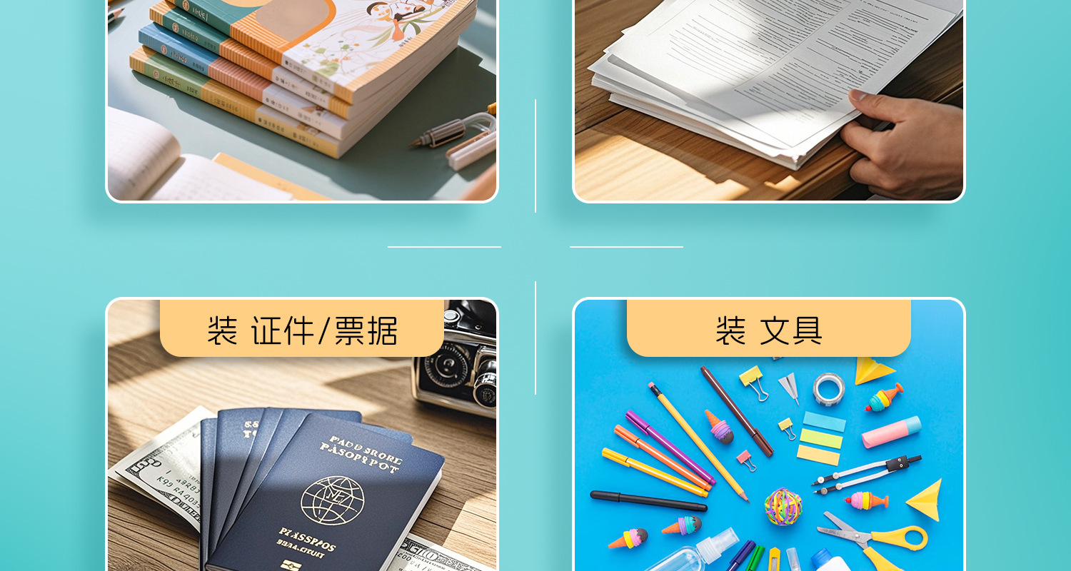ポータブル Morandi A4 二重層肥厚防水学生大容量情報バッグオフィス文書収納バッグ印刷可能