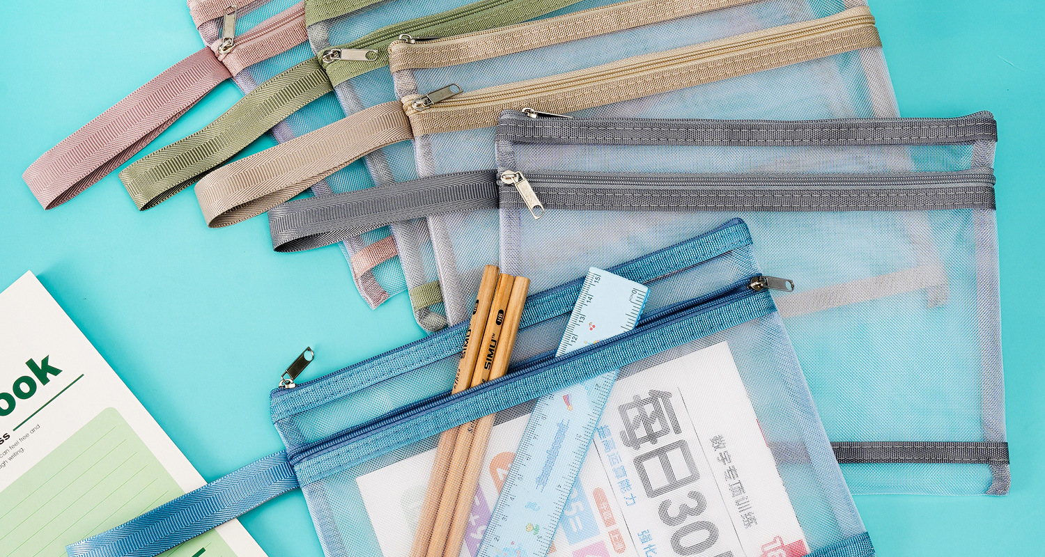 A4透明メッシュ二重ファスナー袋手提げ学生大容量答案資料袋収納袋a5a6書類袋