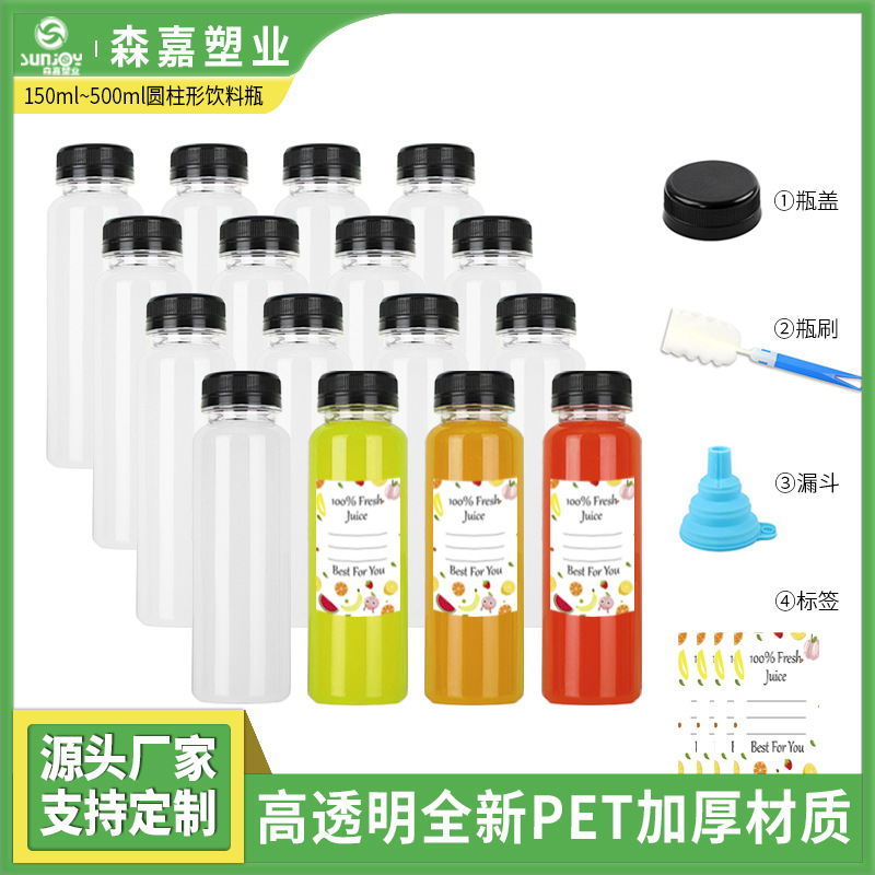 卸売り250mlプラスチックボトル300ml透明食品級円柱飲料瓶pet透明ジュース哺乳瓶