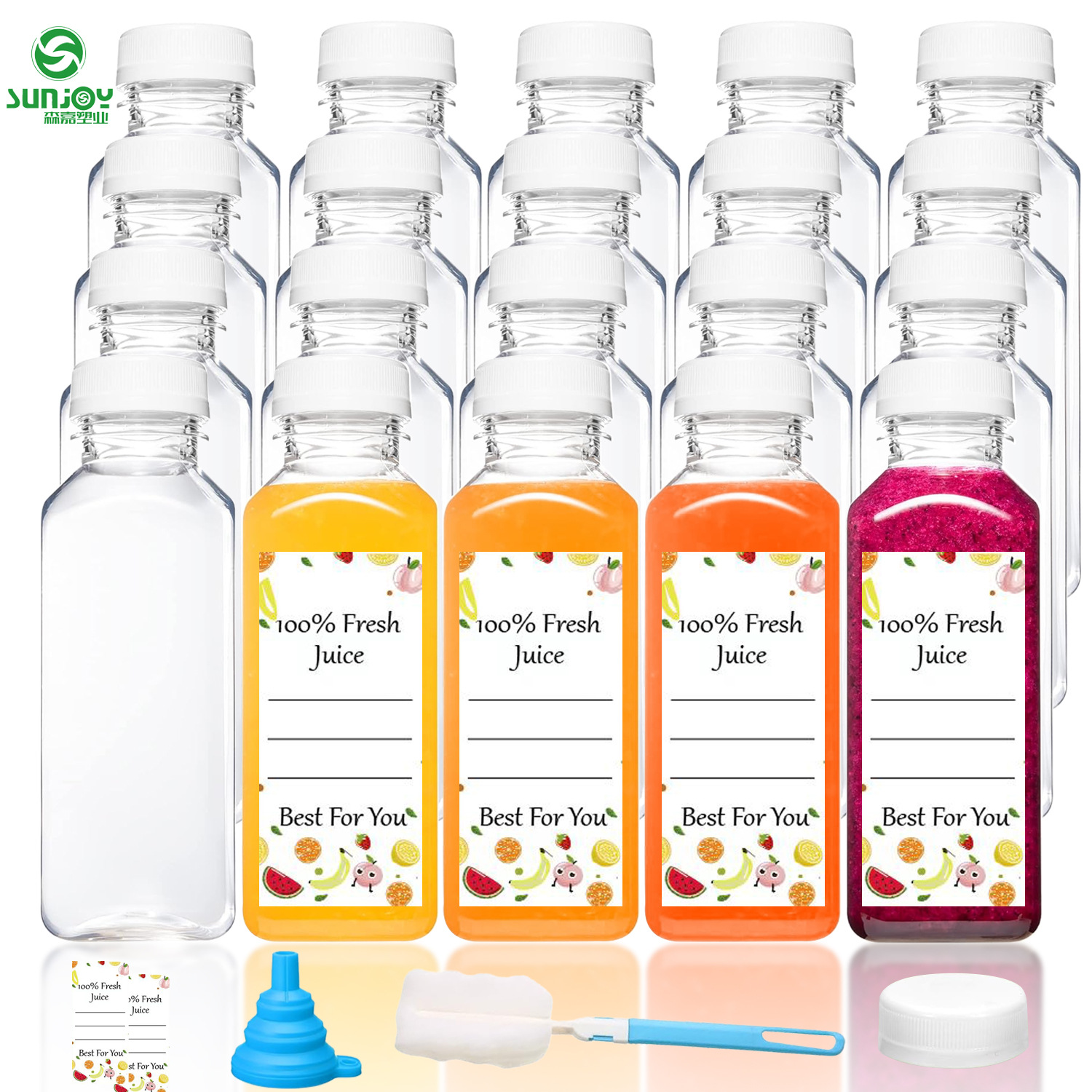透明な正方形のミルクティージュースボトルペットフードグレードのプラスチックボトル正方形の飲料ボトルはジュースの再包装に使用できます