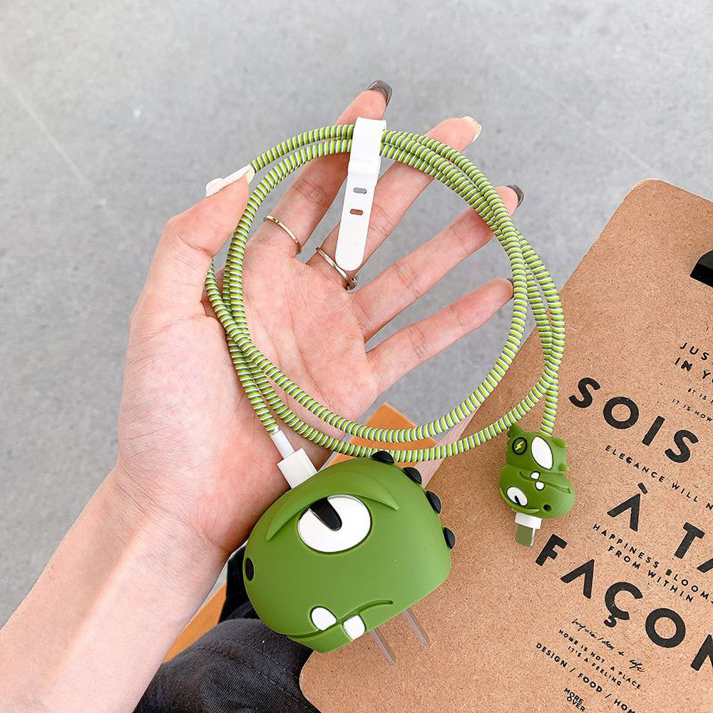 グリーンライトニングドラゴンデータケーブル保護カバーは、Apple 20W充電器充電ヘッドiPhone16Promaxに適しています。