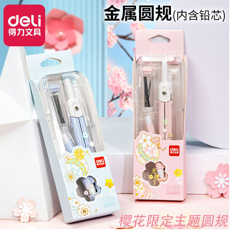 得力樱花季王源圆规套装多功能圆规初中生考试画图组合套装72166