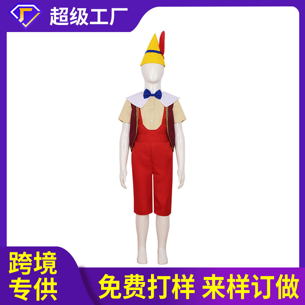 ハロウィーンの長い鼻のピノキオのcos服の人形の奇遇記の舞台の演技の服のコスプレの撮影の服装