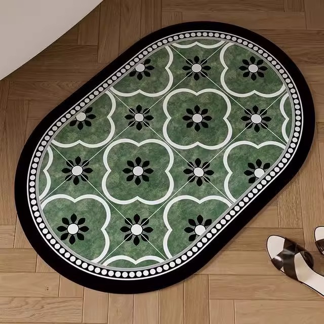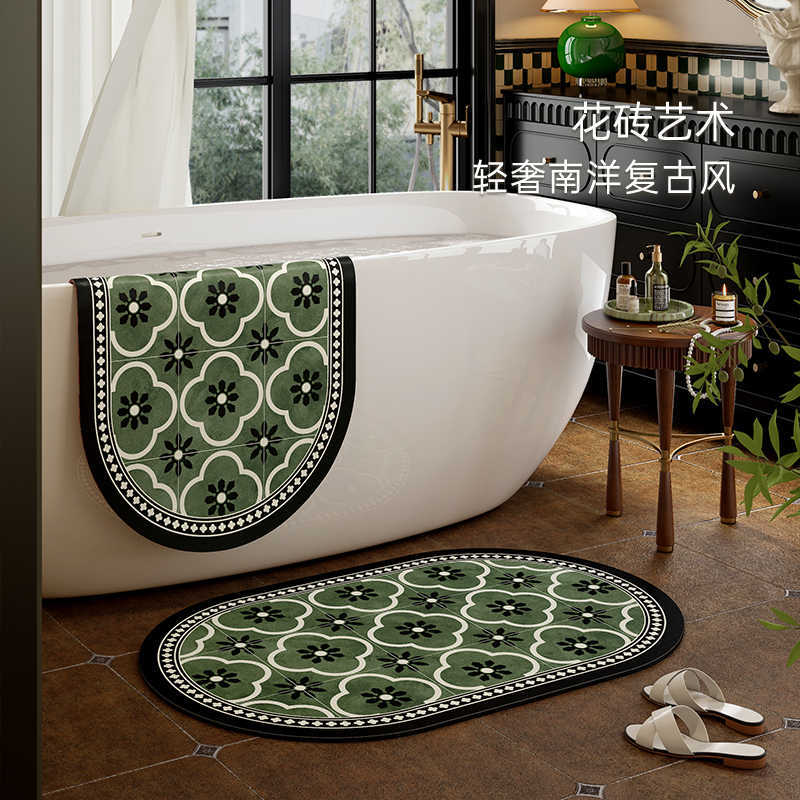 越境軽奢レトロ風バスルームドアマット、吸水速乾フロアマット、家庭用滑り止めソフト珪藻土マット