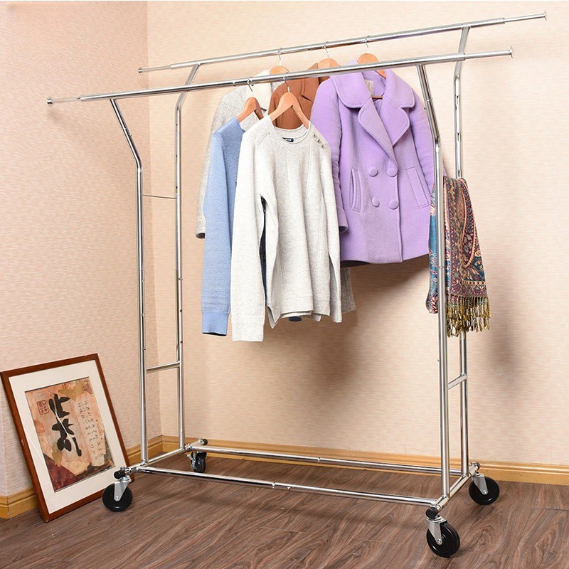 衣類乾燥ラック衣料品店ディスプレイラック可動ステンレス鋼床置き衣類ラック男性と女性の衣料品店ホームラック
