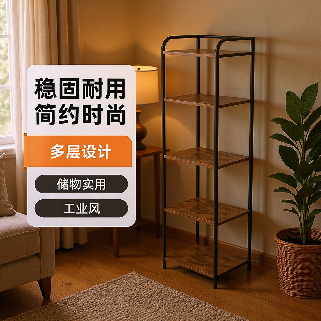 リビングルーム用のクロスボーダー鉄と木材の組み合わせ収納ラック多層収納ラック床置き鉄壁ラックディスプレイ収納ラック
