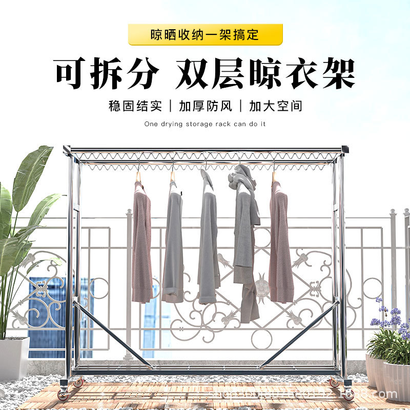 304ステンレスハンガー床置き家庭用ベランダ室外物干しダブル物干し干し布団防風移動可能