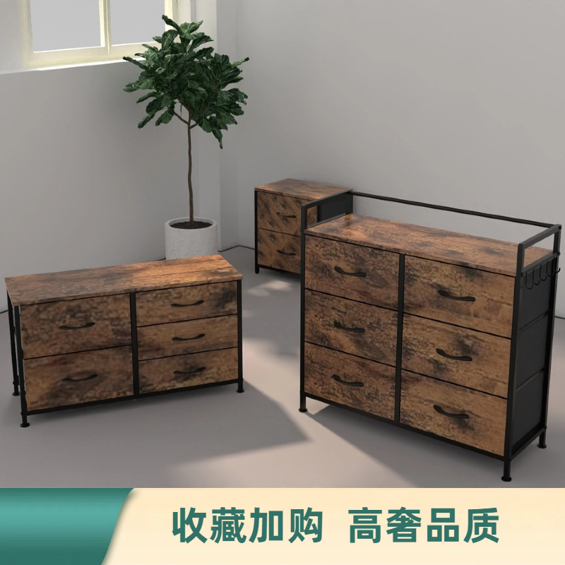 アメリカンレトロな不織布引き出し収納キャビネットデスクトップ印刷収納衣類収納ボックスベッドサイドアイアンフレームキャビネット