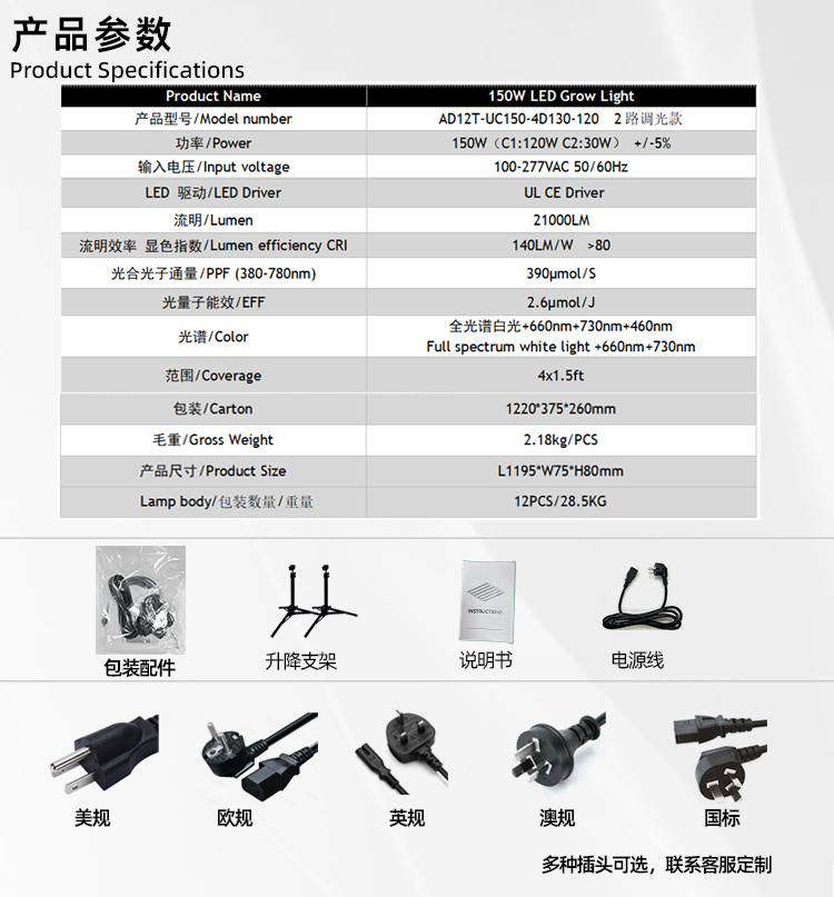 パワー 1.2m (4*1.5ft)-150W-トップフィルライトスリングモデル,1.2m (4*1.5ft)-150W-グランドブラケットタイプ
