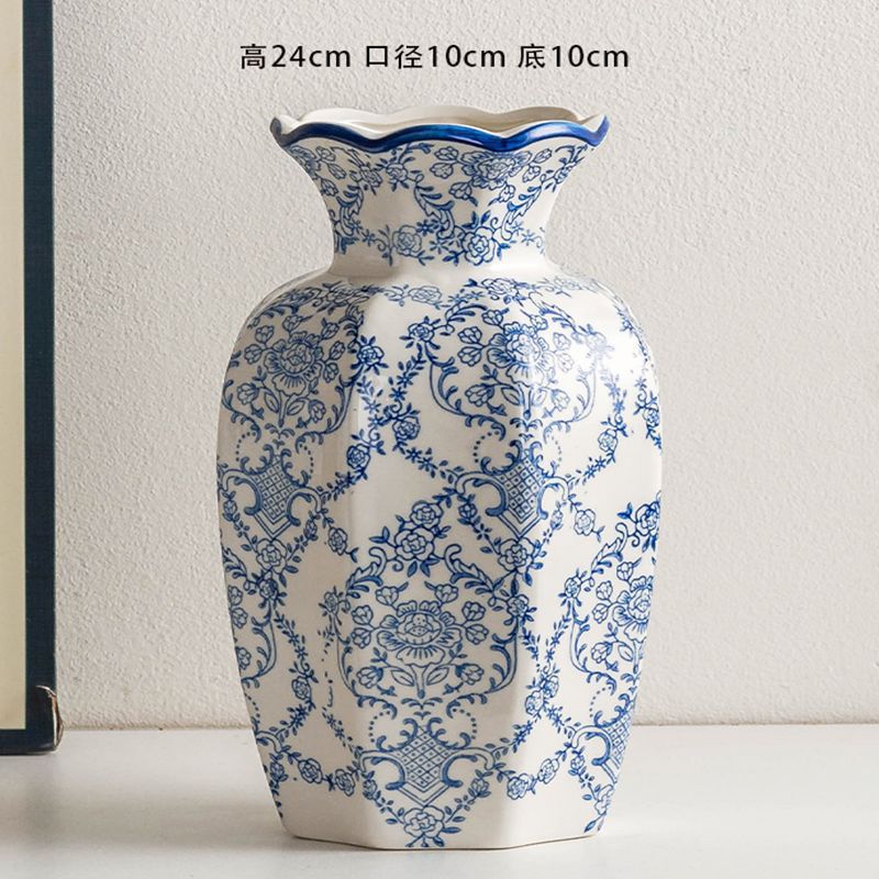 新中国式高級感レトロ青花磁器八角形陶磁器花瓶客レストラン玄関シミュレーション生け花飾り置物