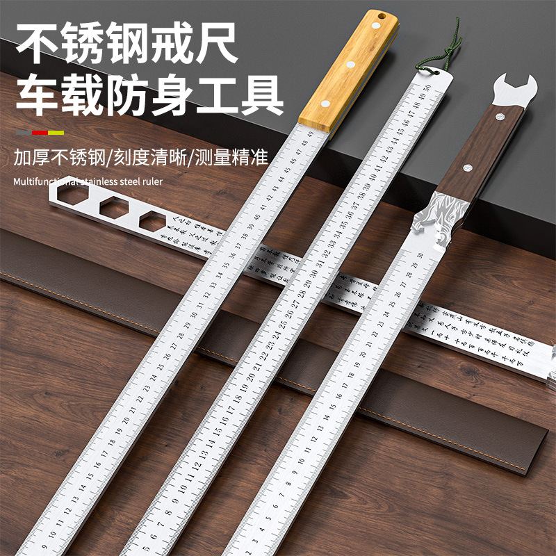 戒尺防卫直尺不锈钢加厚刻度钢直尺多功能车载测绘镇尺加长防身尺