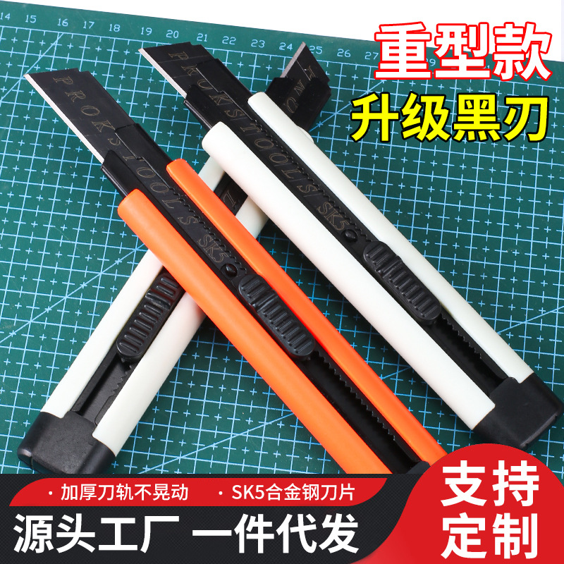 万能ナイフ、紙切りナイフ、梱包開封ナイフ、黒刃、耐久性、厚刃、壁紙ナイフ、手工芸ナイフ、オフィス文具ナイフ、工業グレード