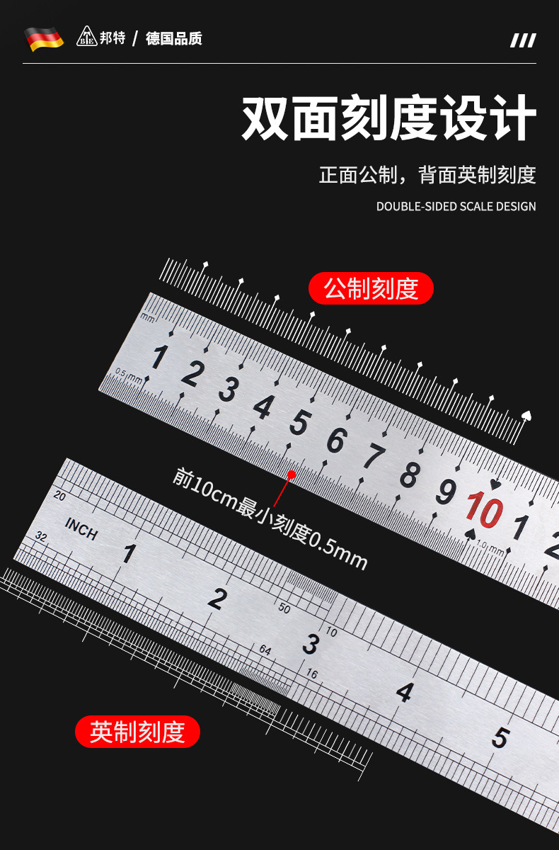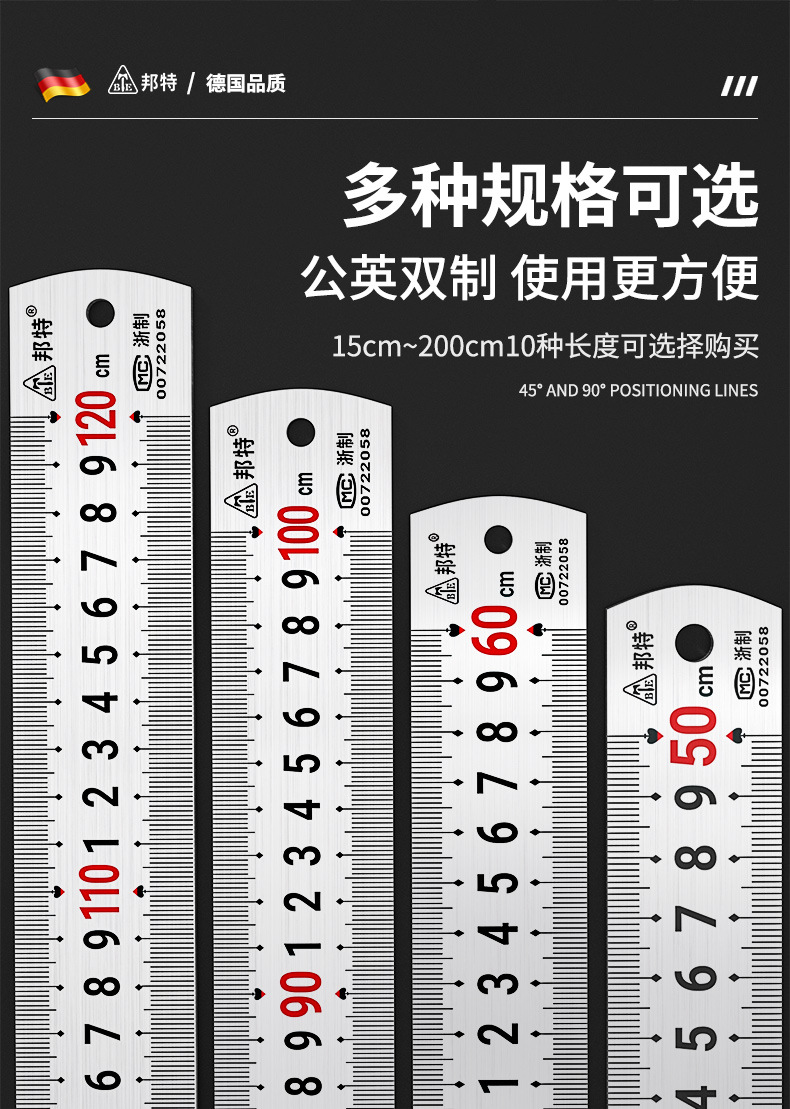 メートル法とインチ法の鋼直定規、鋼板定規、ステンレス鋼両面厚み定規 15cm - 2m、完全な仕様、代理販売可能