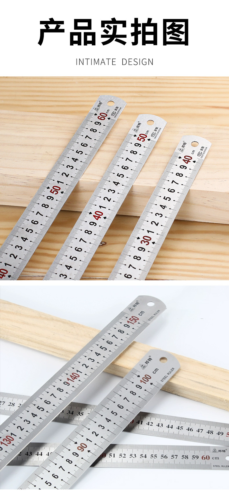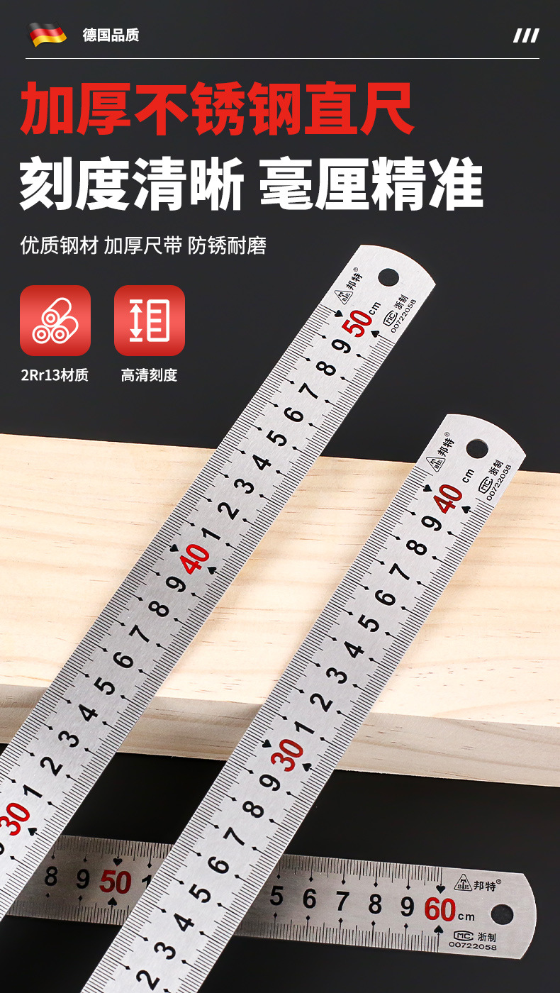 钢尺加厚不锈钢直尺 15/20/30/50/60cm1米测量工具尺子木工用铁尺