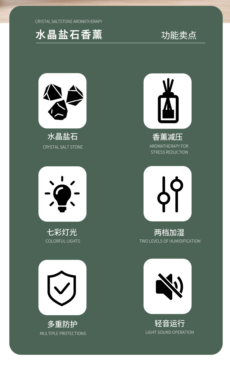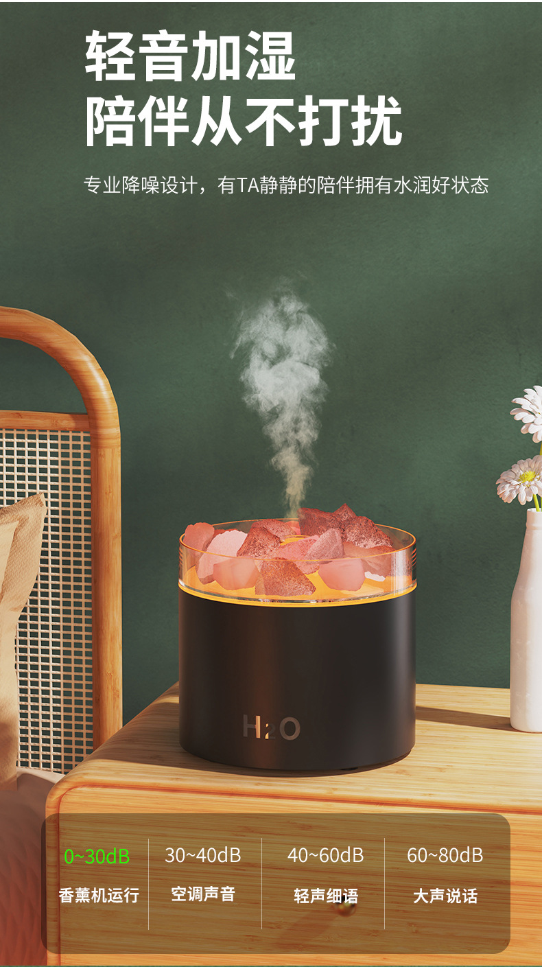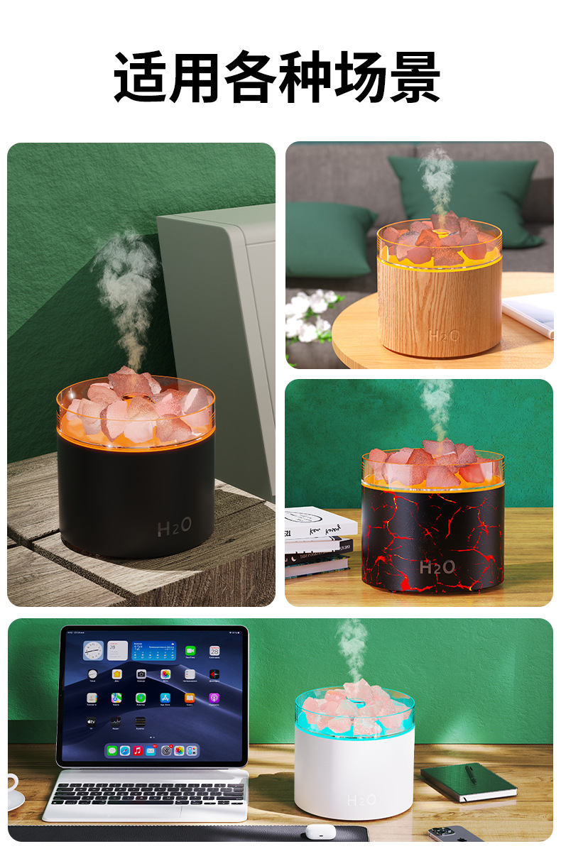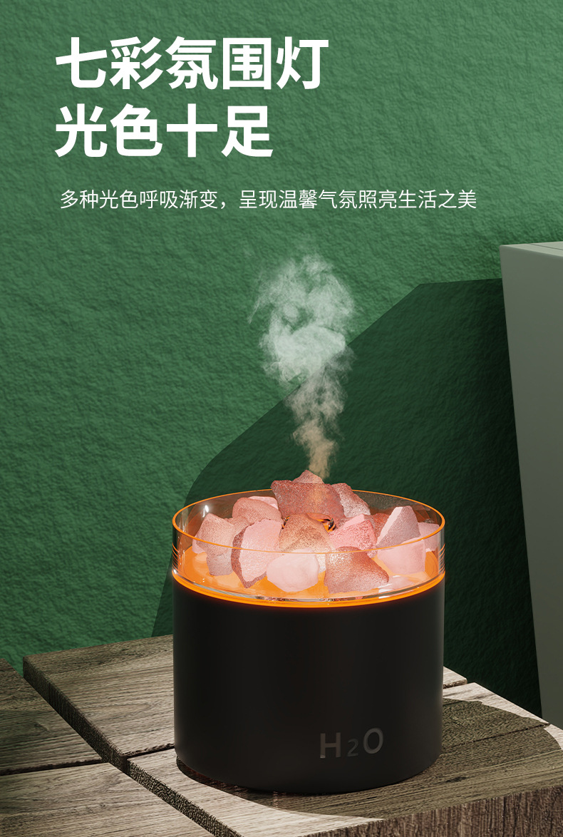 盐矿负离子香薰机 氛围灯家用卧室静音加湿器 桌面大雾量精油机器