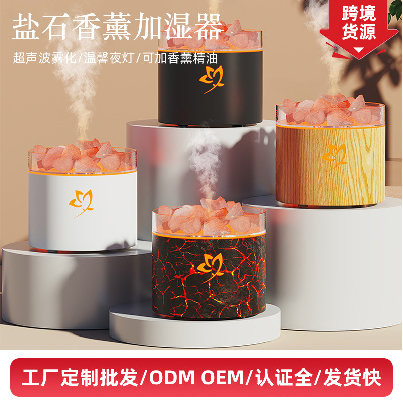 跨境天然盐石香熏机 新款玫瑰香熏精油加湿氛围灯室内盐石香熏机