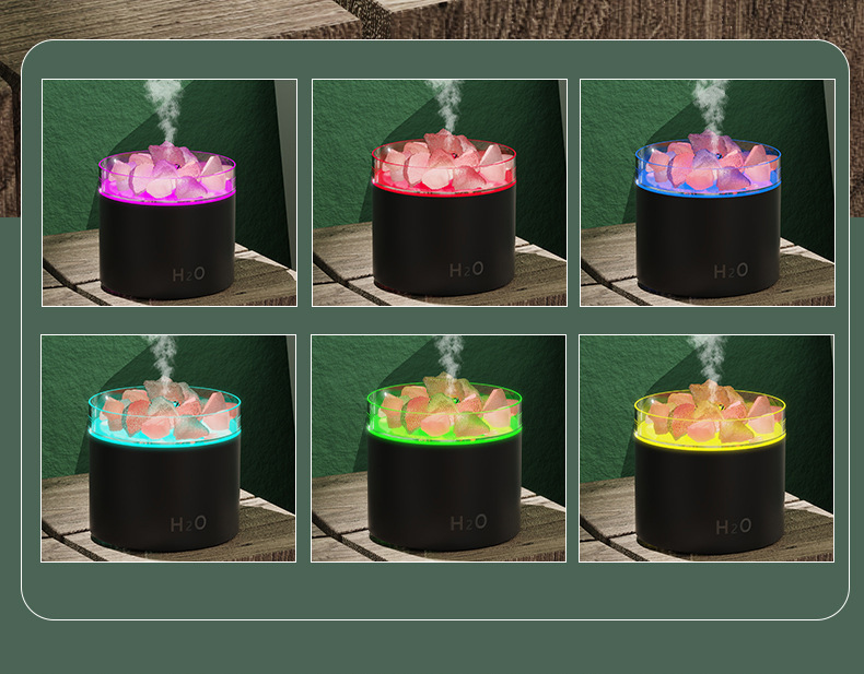 塩石創意ヒマラヤ山脈天然鉱七色炎小型加湿器寝室デスクトップ拡香薫機