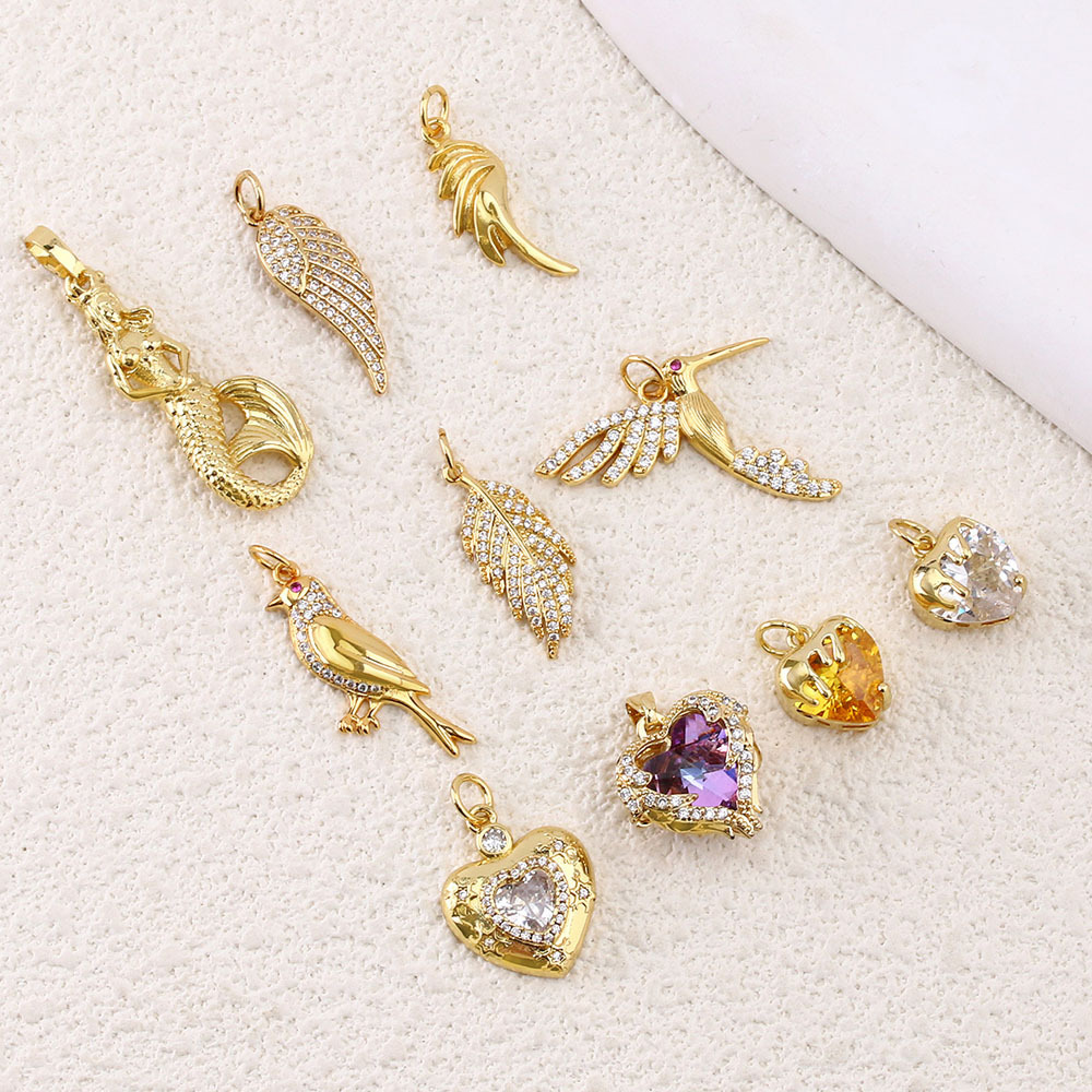 ヨーロッパとアメリカのクロスボーダー DIY ジュエリー アクセサリー銅金メッキキツツキ天使の羽愛マーメイドネックレスペンダント