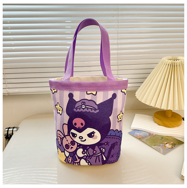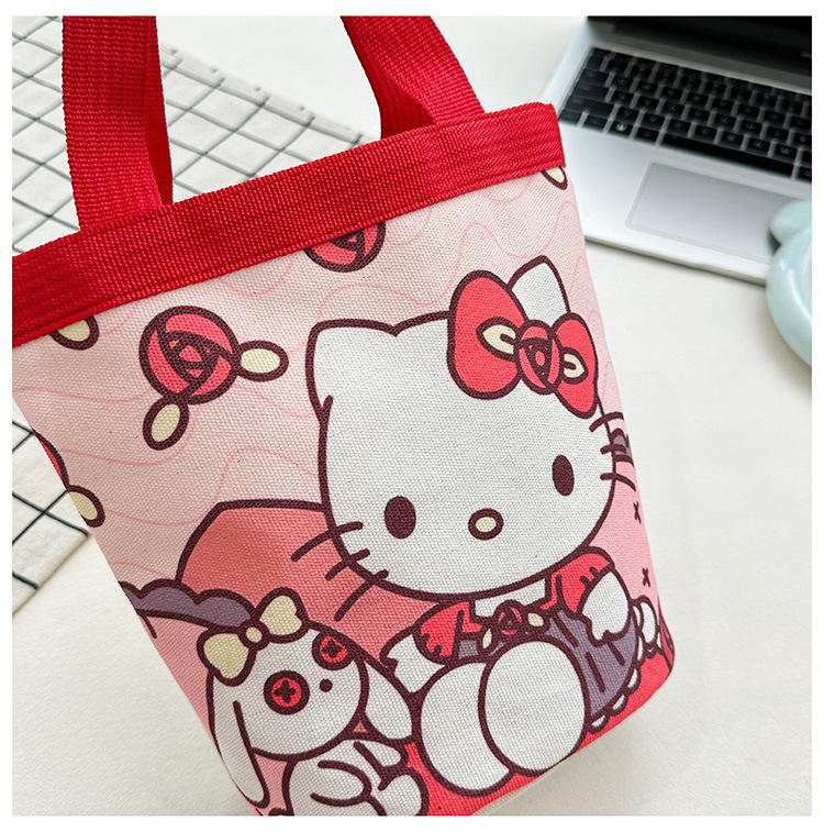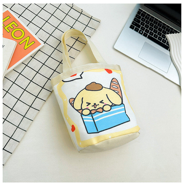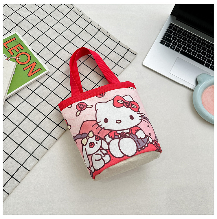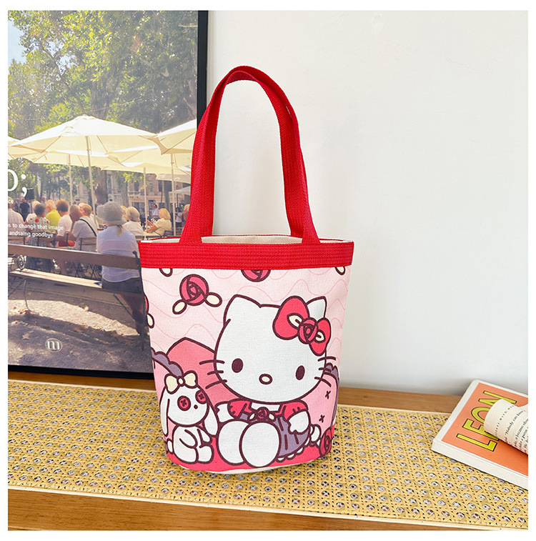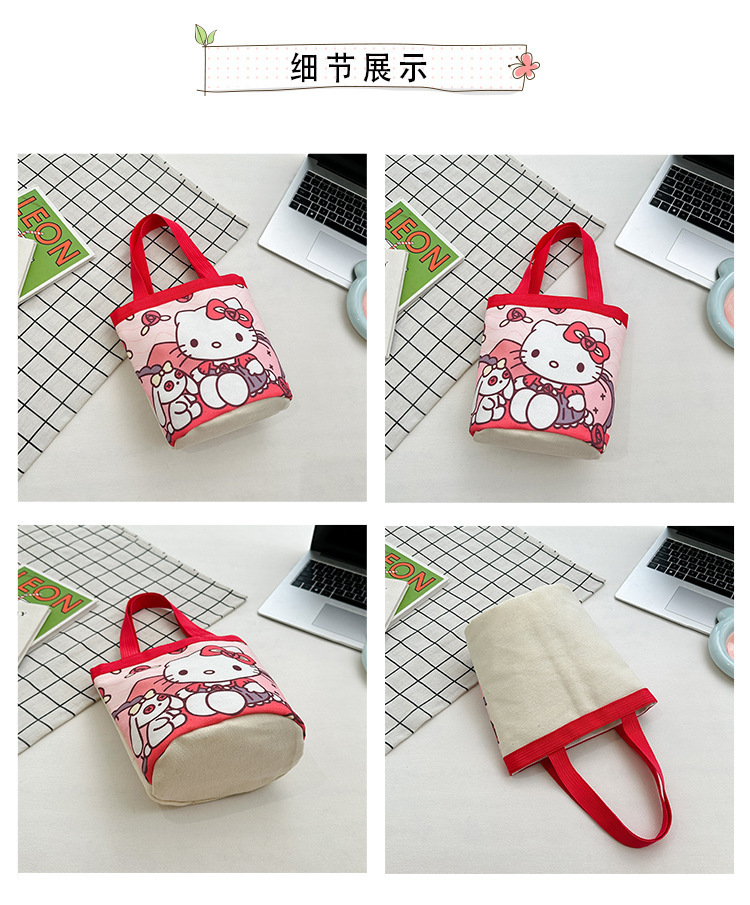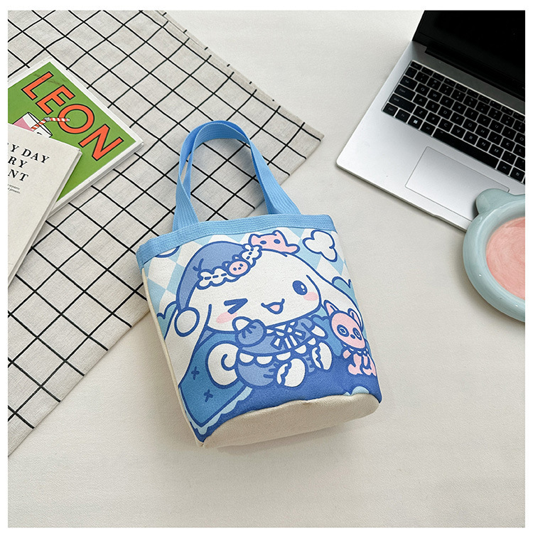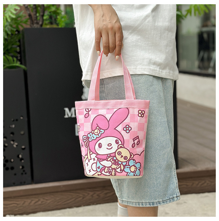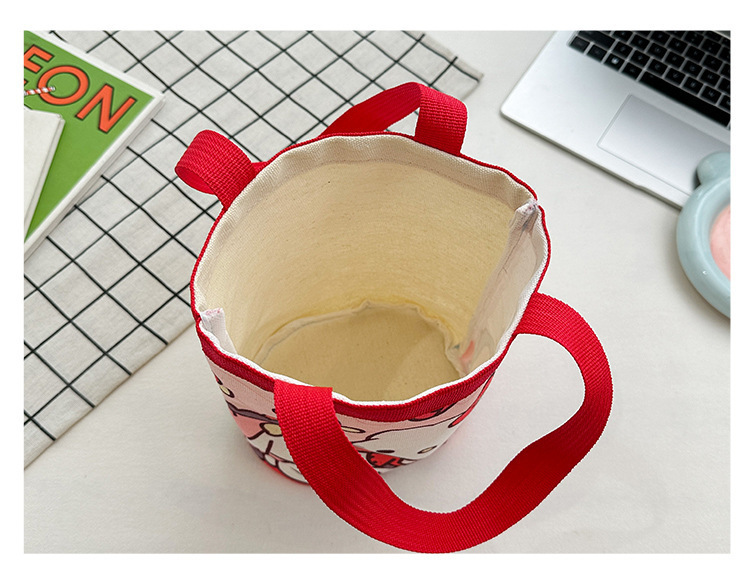バケツポータブル韓国風ガールハートママランチバッグ仕事用小さなバッグ子供っぽい落書きキャンバスバッグかわいいイラスト