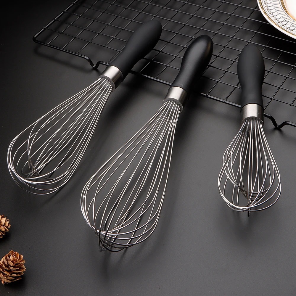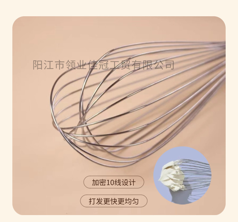 10本のステンレス製の手動泡立て器、プラスチック製のハンドル、クリームや卵を泡立てるためのキッチンツール