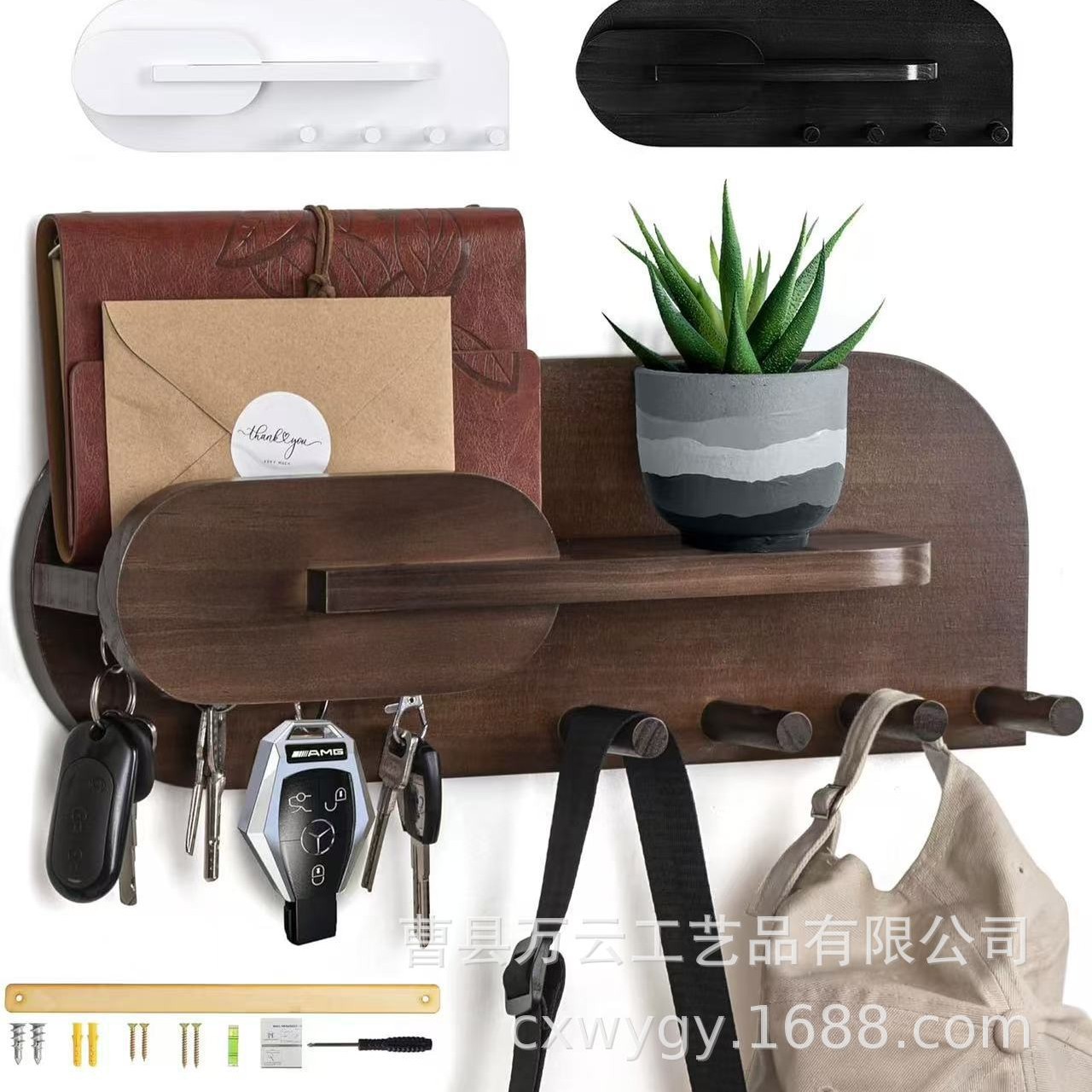 フック付き木製壁収納ラックリビングルーム玄関壁掛けキーラック木製壁レター収納ラック