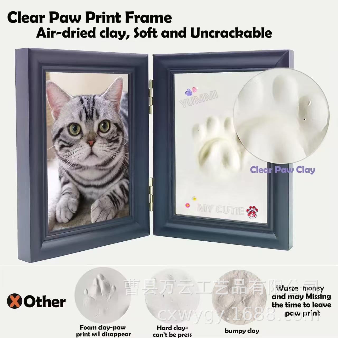 木製ペットフォトフレーム足跡折りたたみ足跡手形泥テーブル木製ペット手形と足形記念フォトフレーム