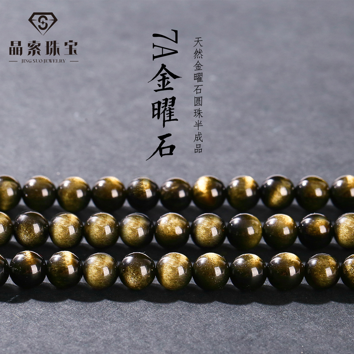 晶索ジュエリー 7A天然金曜石ルースビーズ DIYファッションカップルブレスレットアクセサリー装飾ビーズ卸売