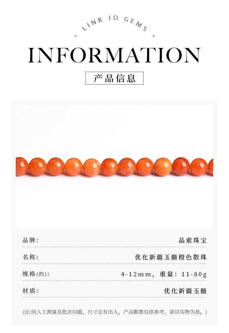 結晶徳ジュエリー最適化オレンジ色新疆玉髄散珠模造紅東陵円珠diyブレスレットアクセサリー卸売り