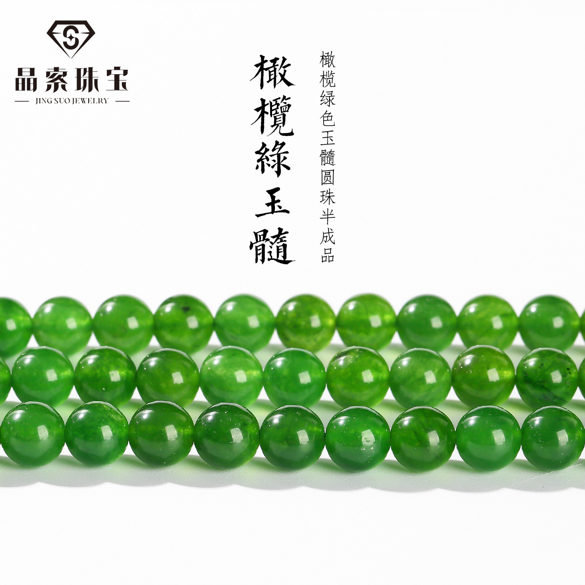 クリスタルジュエリー オリーブグリーンカルセドニー ルースビーズ DIY半製品 ブレスレット ラウンドビーズ アクセサリー ジュエリー卸売