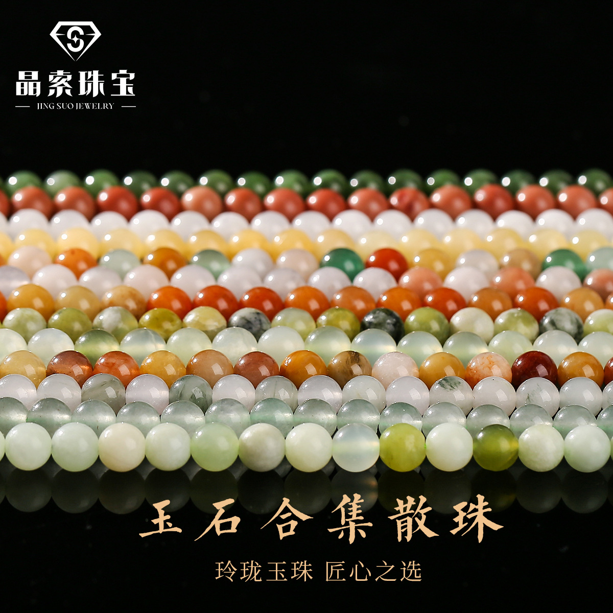 晶索天然石多材质散珠合集 圆珠串珠配件散珠玉石diy饰品手串配饰