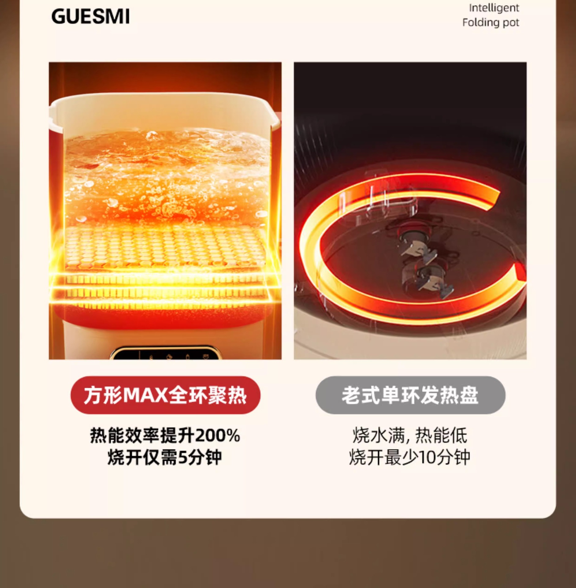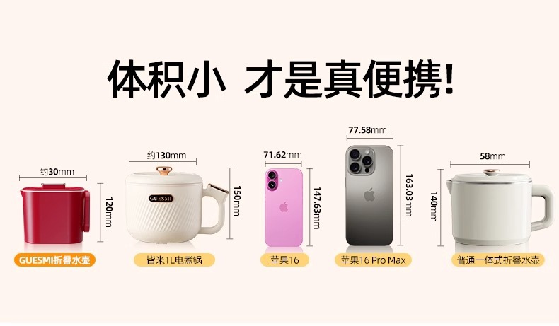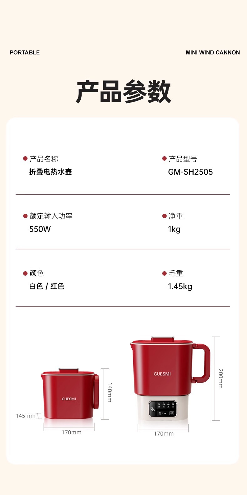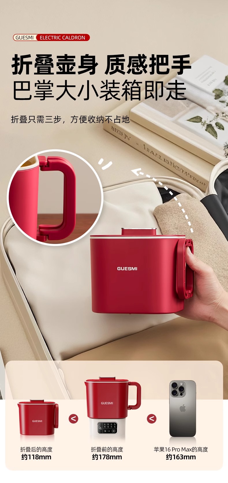 Jiemei 折りたたみケトル アウトドア 旅行 ポータブルケトル 断熱電気ケトル ミニ小型電気調理鍋