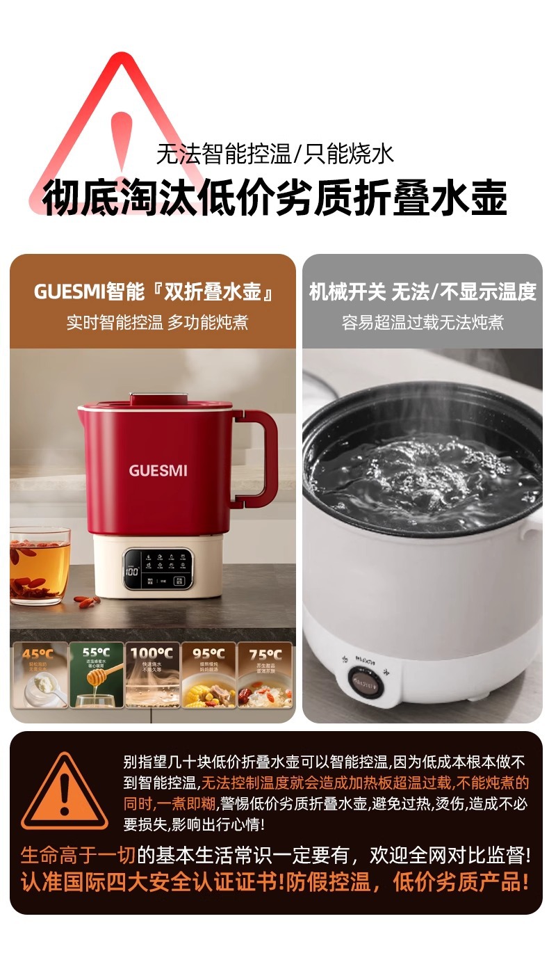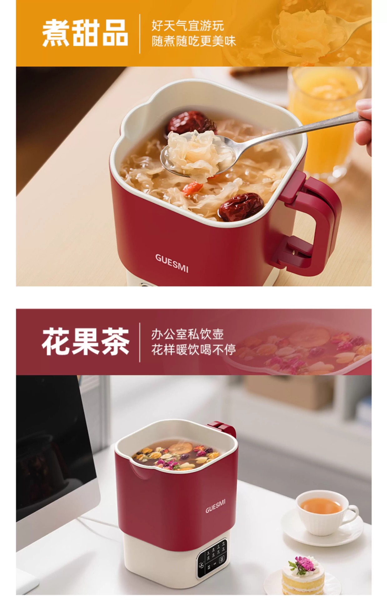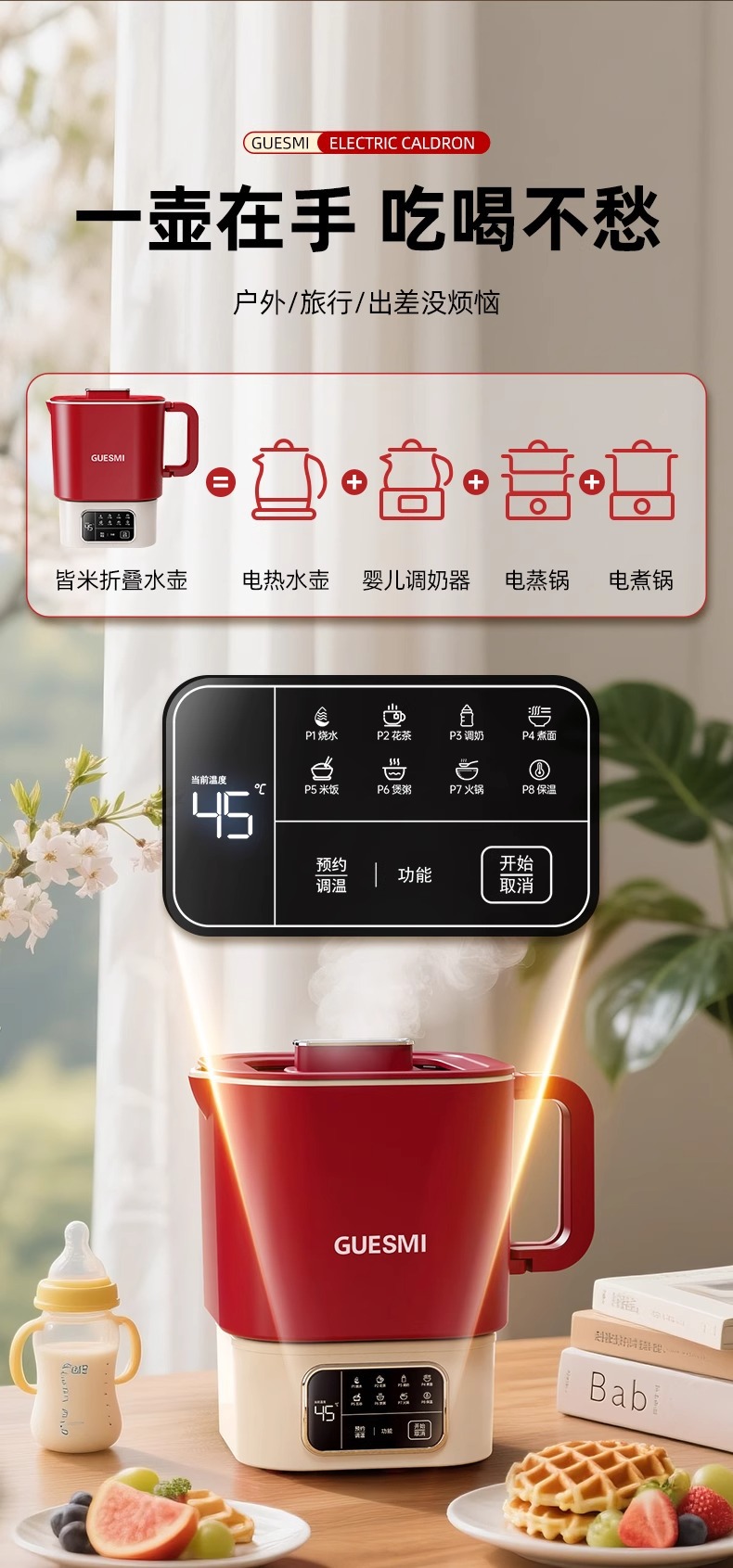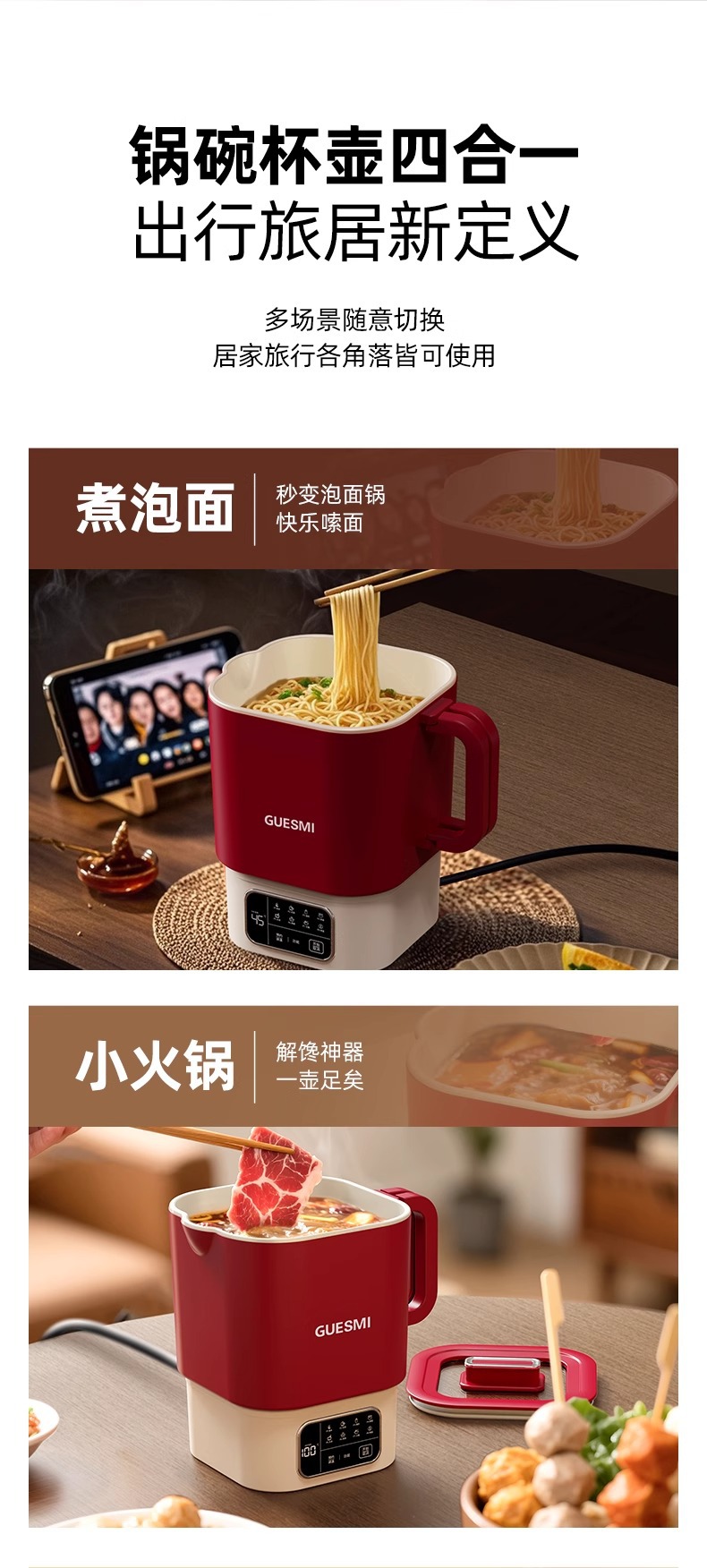 Jiemei 多機能折りたたみ電気ケトルミニ電気調理鍋ケトルアウトドア旅行ポータブル小型断熱