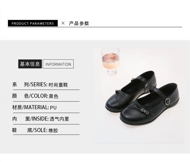 女の子の靴の柔らかい底の王女の靴の黒色の学生の中で子供のファッションは靴の赤ちゃんの靴の子供の靴を演出します。