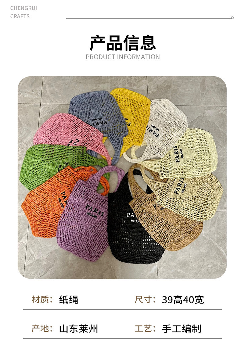 PD方のワンピース発送、編み込みバッグ、メッシュ紙紐、ワンショルダー、カラフルな透かし編み草編みバッグ、海辺の休暇、ビーチバッグ、女性用