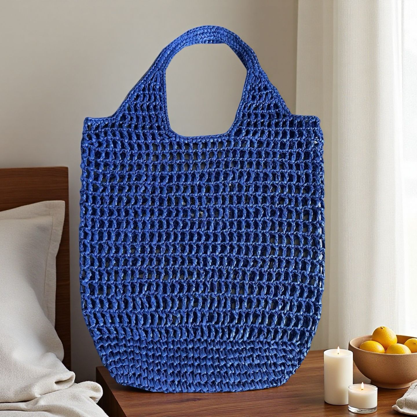 百合大容量透かし彫り草編みバッグ小清新キャンディー色シングル肩托特編みバッグ手提げビーチ女性バッグ