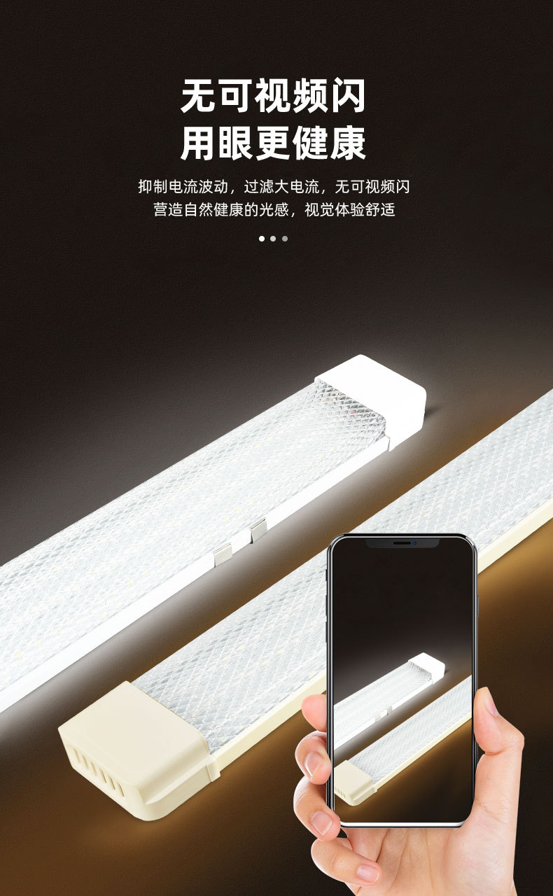 3つの耐性を備えたLEDストリップライト一体型蛍光管正方形プリズムカバー天井家庭用ストリップライト1.2mブラケットライト