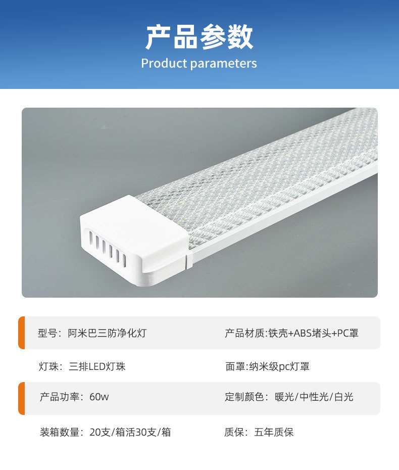 アメーバスタンドライト一体化三防浄化ランプオフィス家庭用超亮省エネled長条浄化ランプ