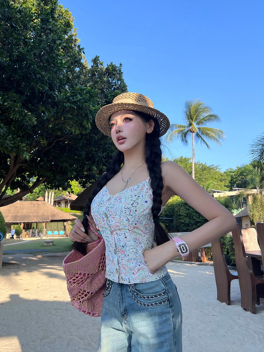 チューブトップ 2025 Xiaoyu サスペンダーアウターベスト女性のデザインセクシーな新しい夏のホットガール手描きスタイル落書き
