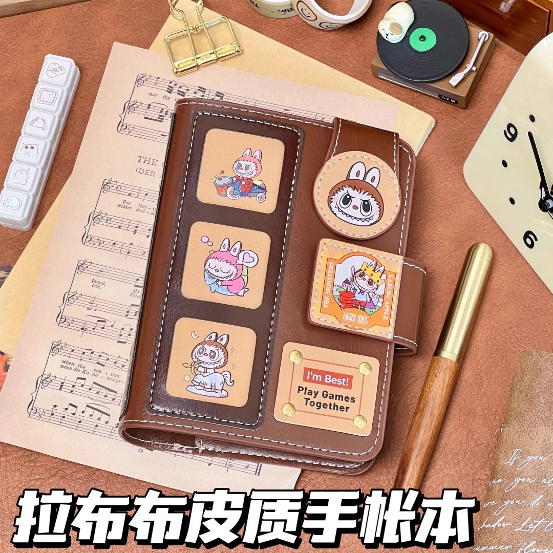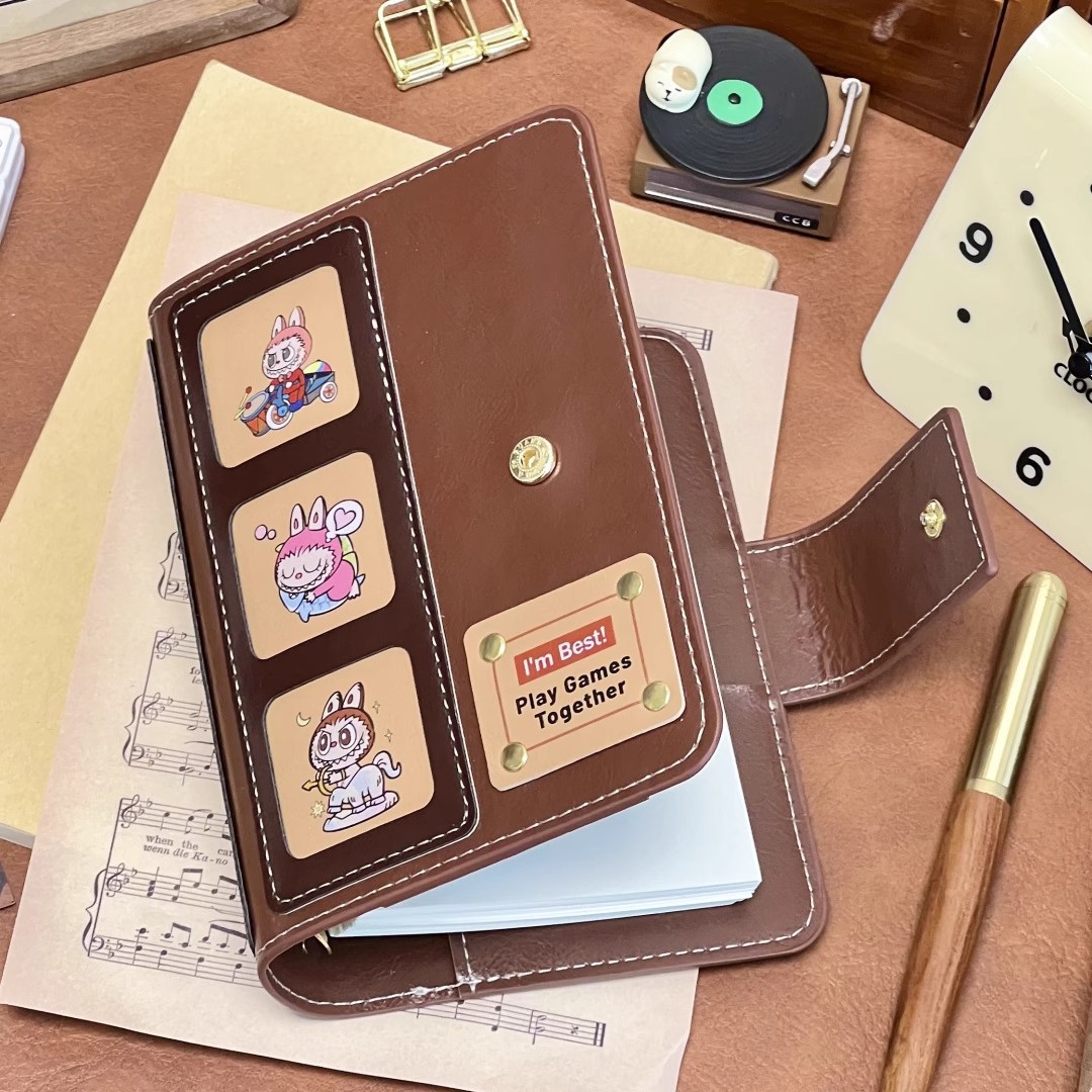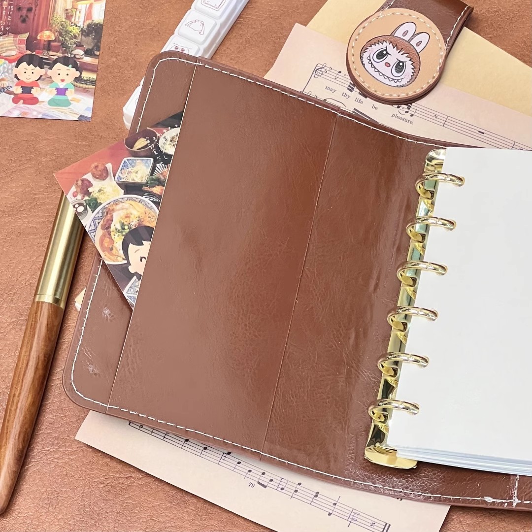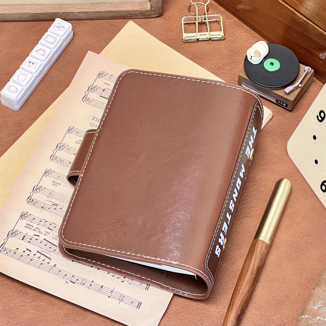 星星人M6复古棕色皮质手账本ins风活页笔记本学生日记本记事本子