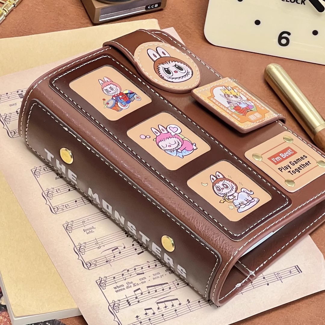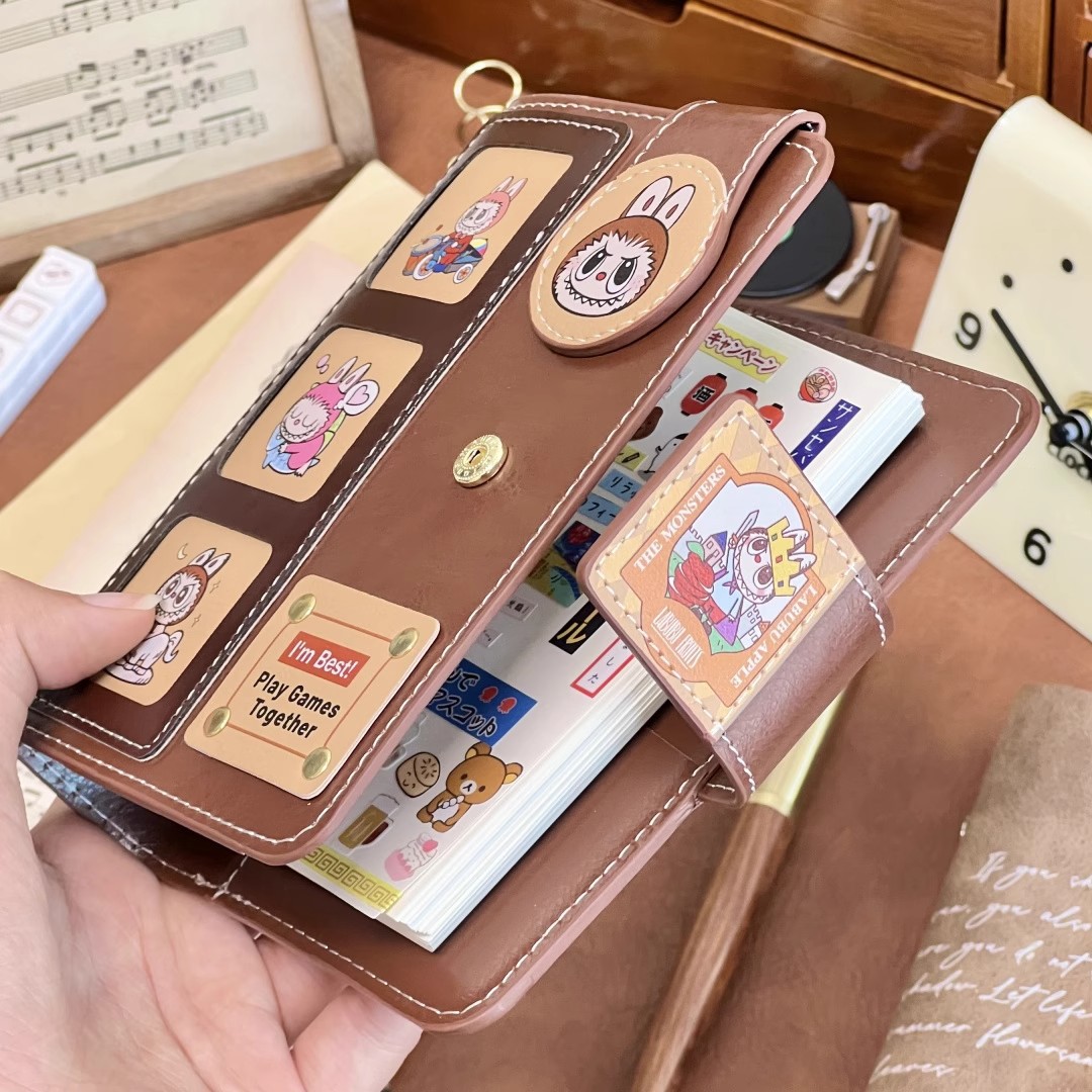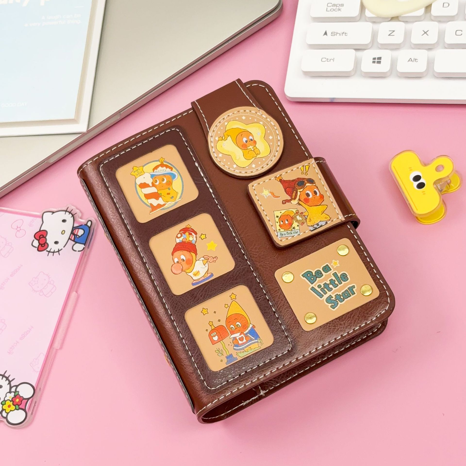 星星人M6复古棕色皮质手账本ins风活页笔记本学生日记本记事本子