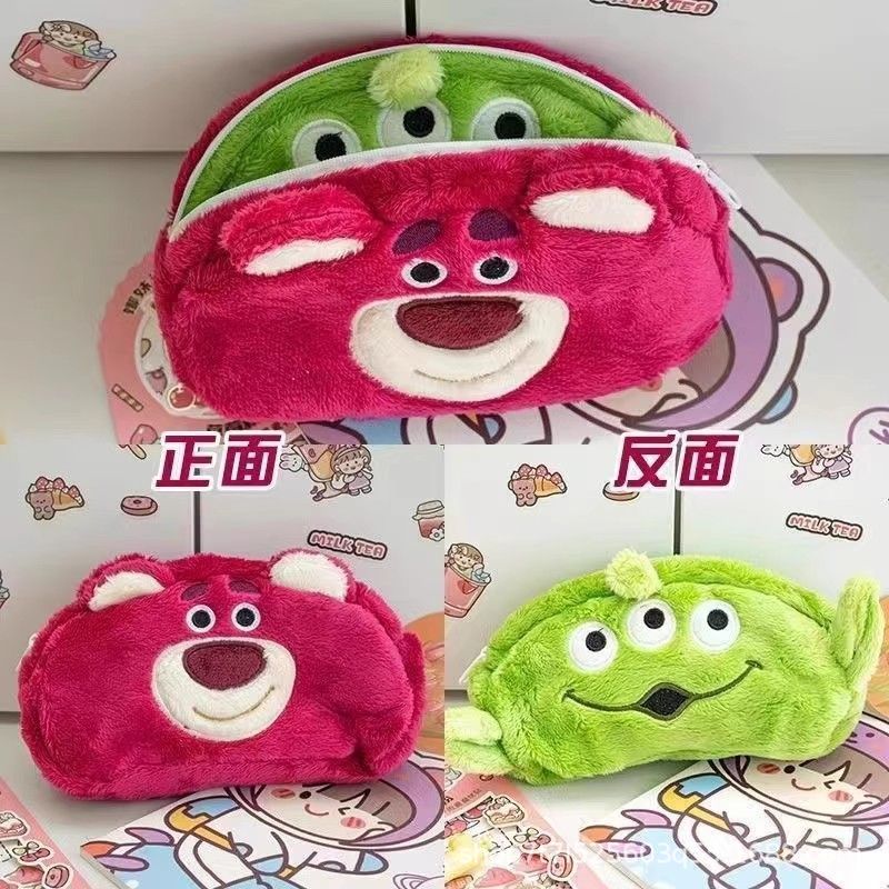 かわいいイチゴクマ三つ目ペンバッグ大容量リトルモンスター鉛筆バッグ両面女の子ぬいぐるみクリエイティブ文具箱