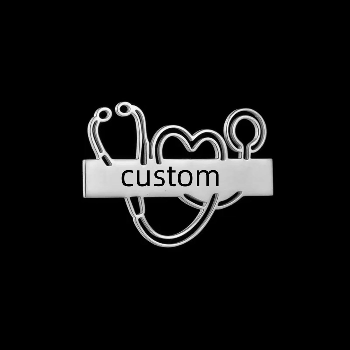 厂家批发不锈钢听诊器长条胸针 Custom个性激光刻字胸牌别针胸饰