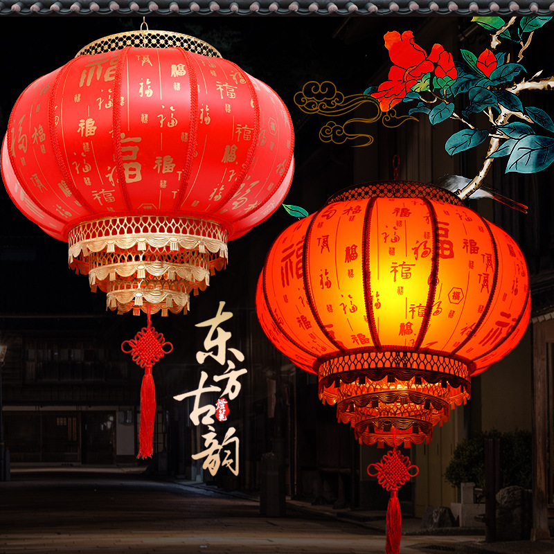 ラウンドシープスキン赤い提灯屋外防水広告アンティーク中国風春祭りドアストリート景勝地赤梅と樺の照明