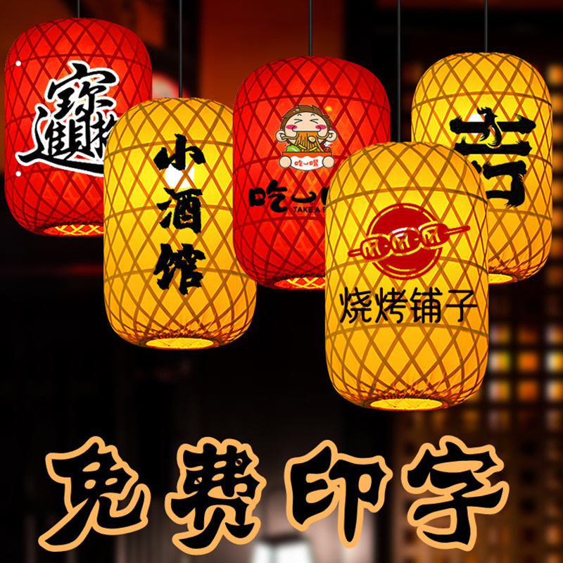 竹ランタンシャンデリア竹ランプシェード無料印刷新しい中国風鍋レストラン景勝地装飾屋外防水