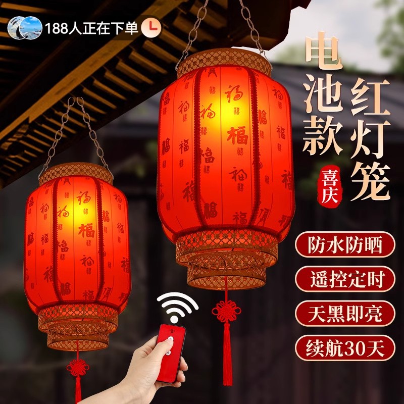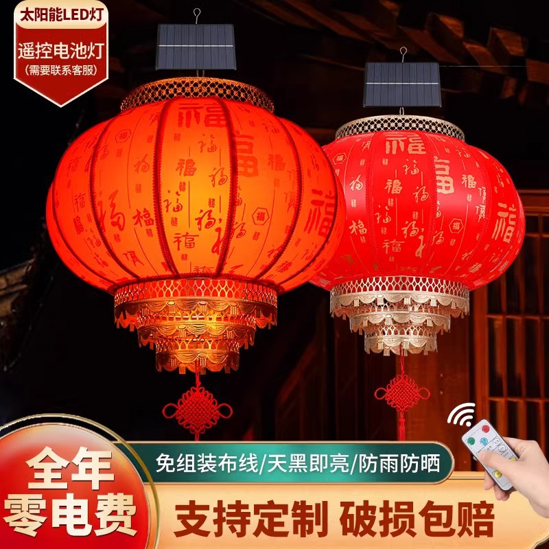 ソーラー式屋外配線不要中庭羊皮大紅提灯吊飾結婚式電池式家庭用新築祝い梅樺灯飾